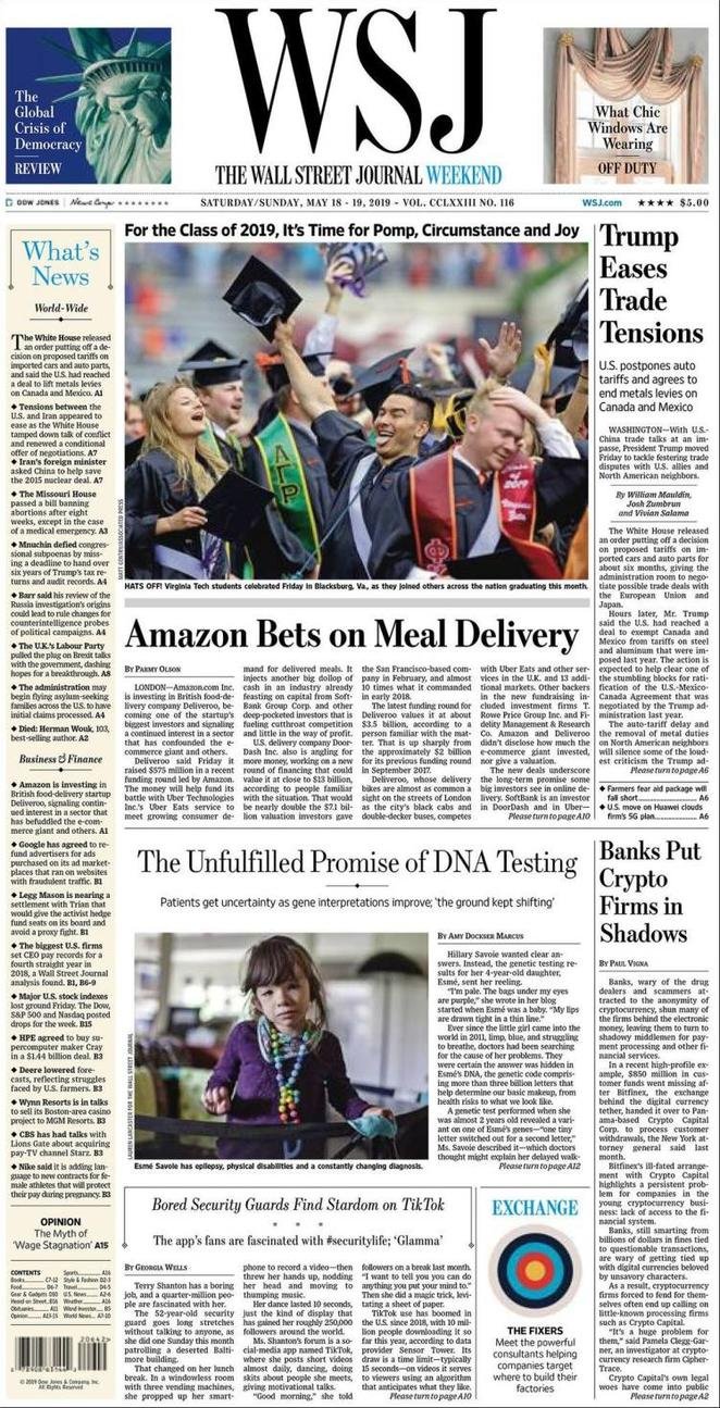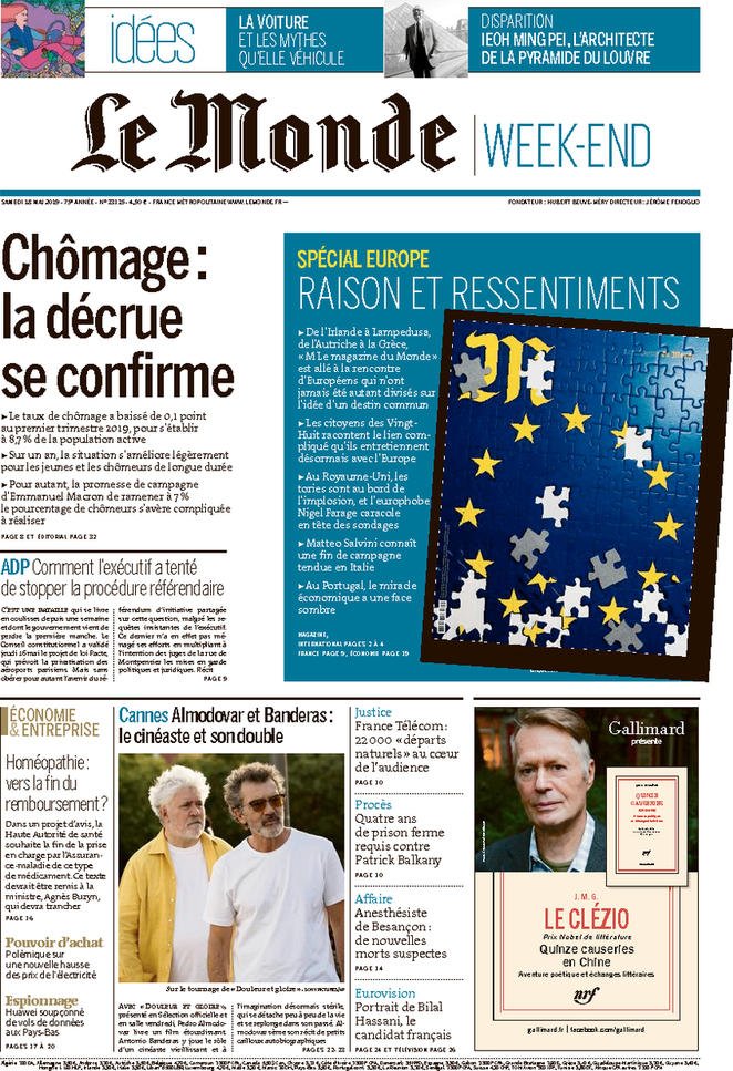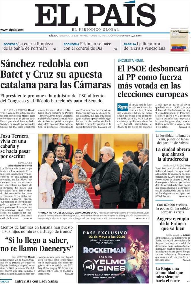 Rassegna delle prime pagine dei principali giornali esteri in edicola oggi 18 maggio 2019