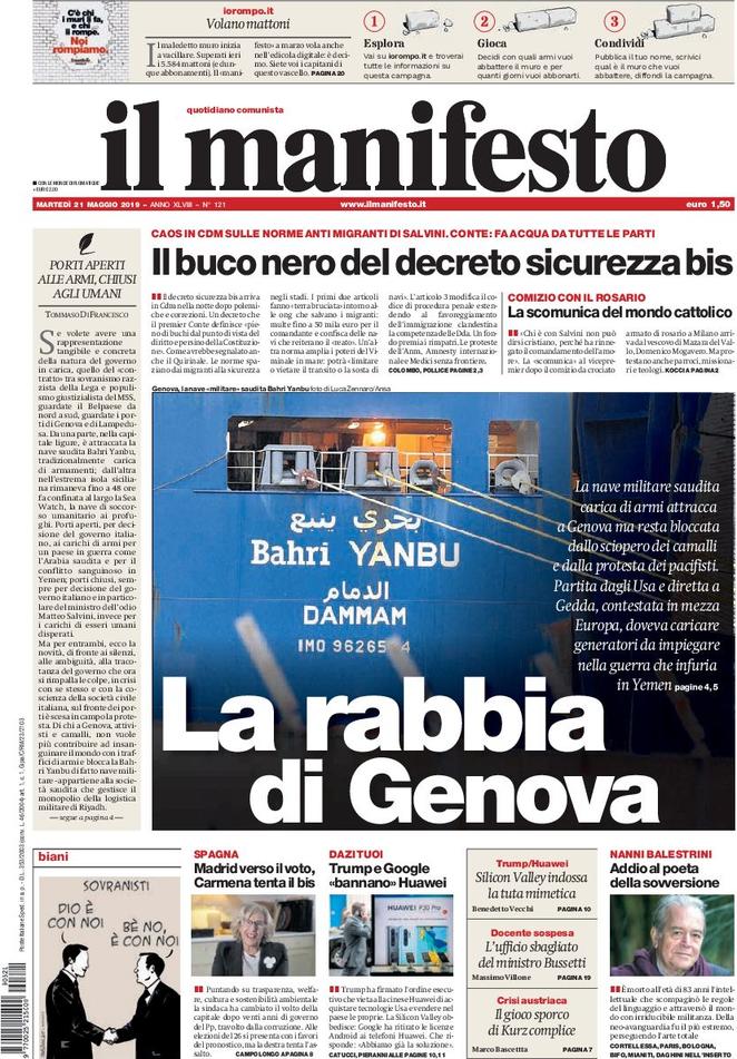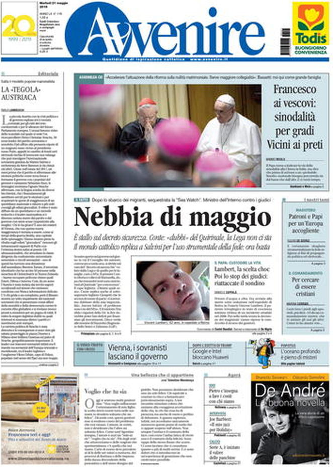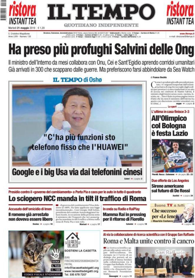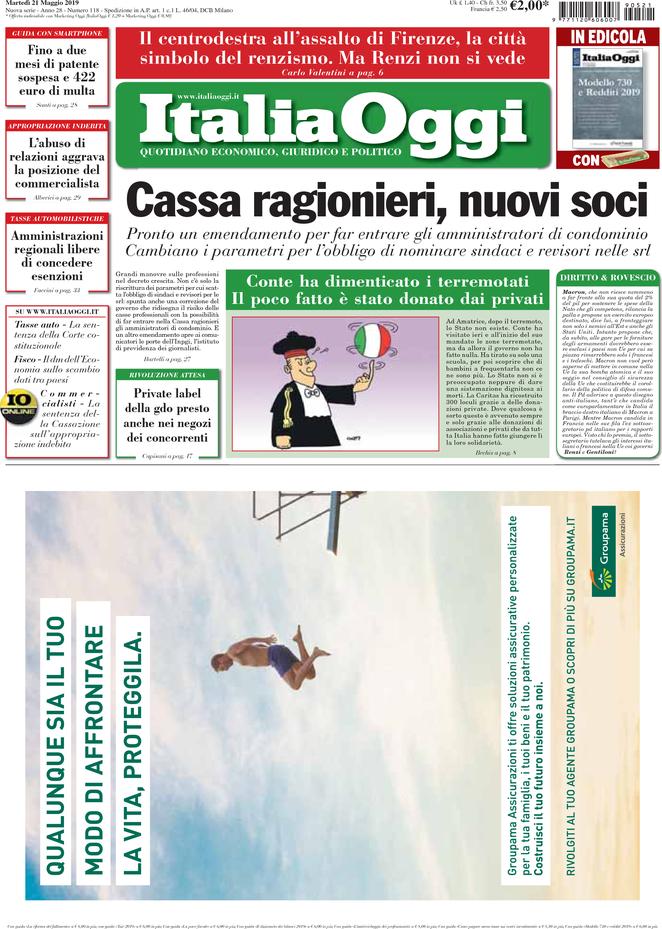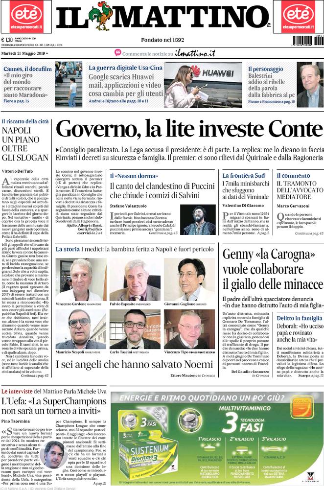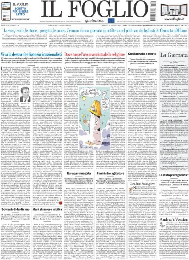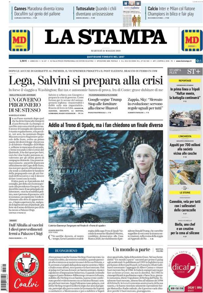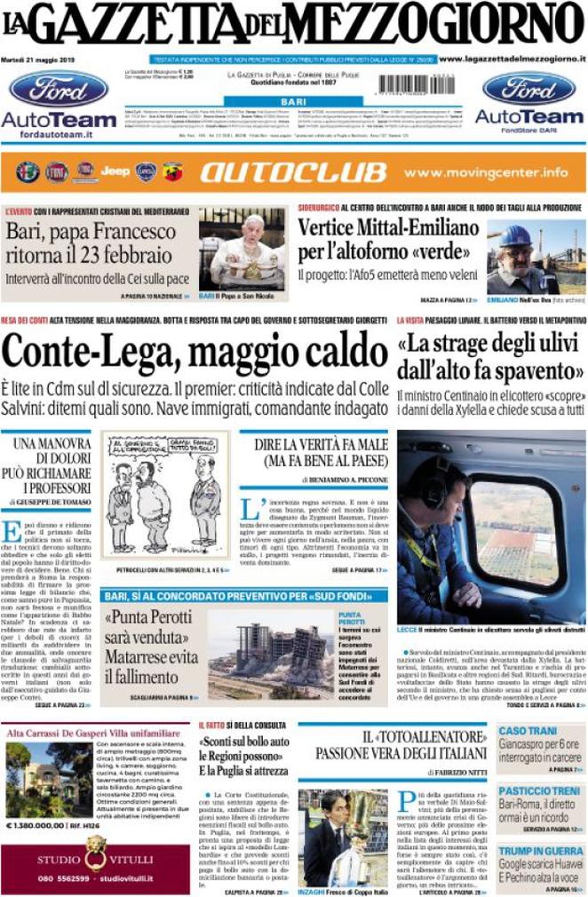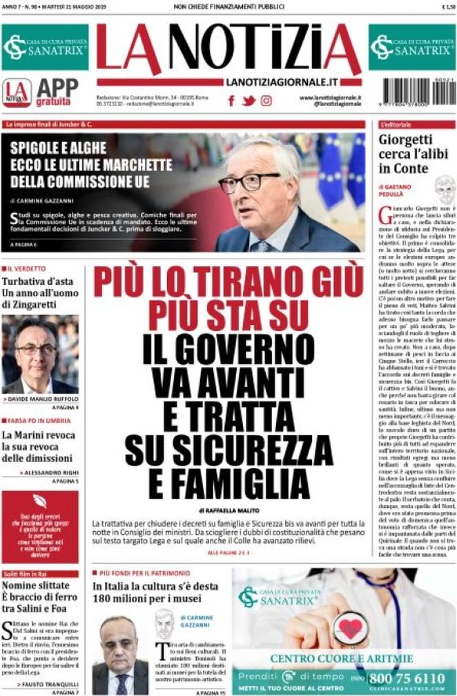 Rassegna delle prime pagine dei principali giornali italiani in edicola di oggi 21 maggio 2019