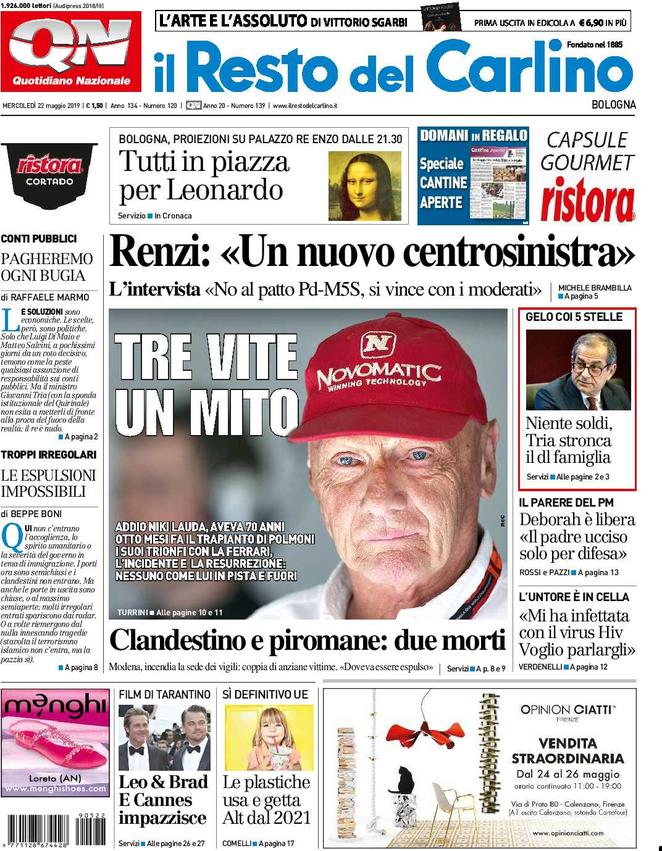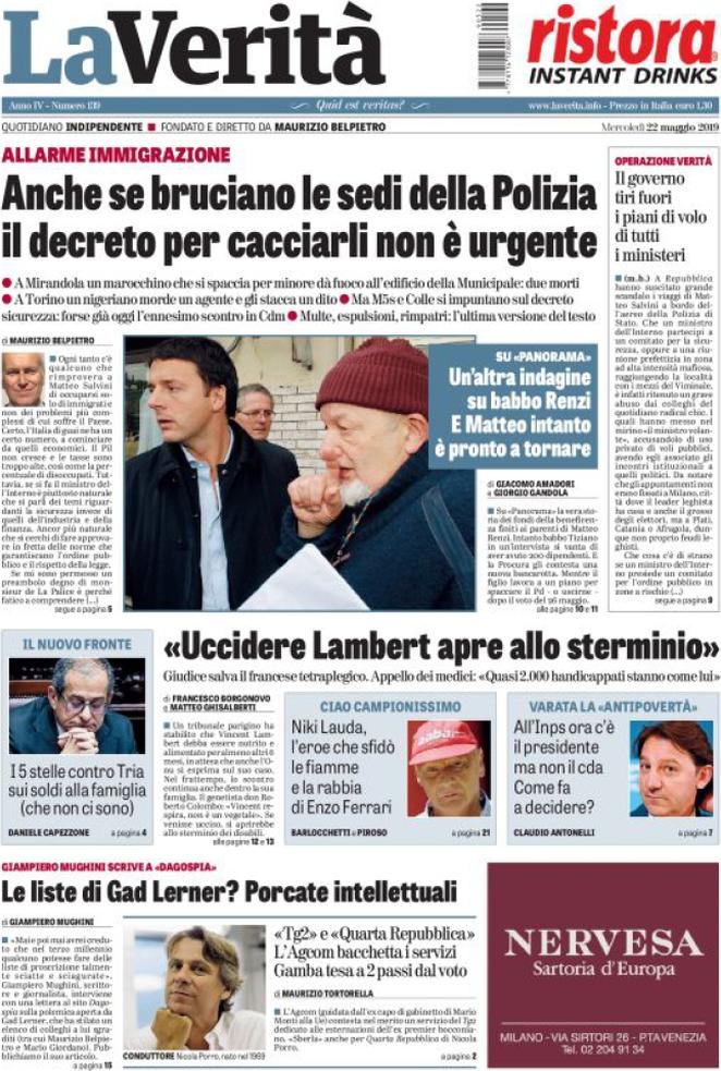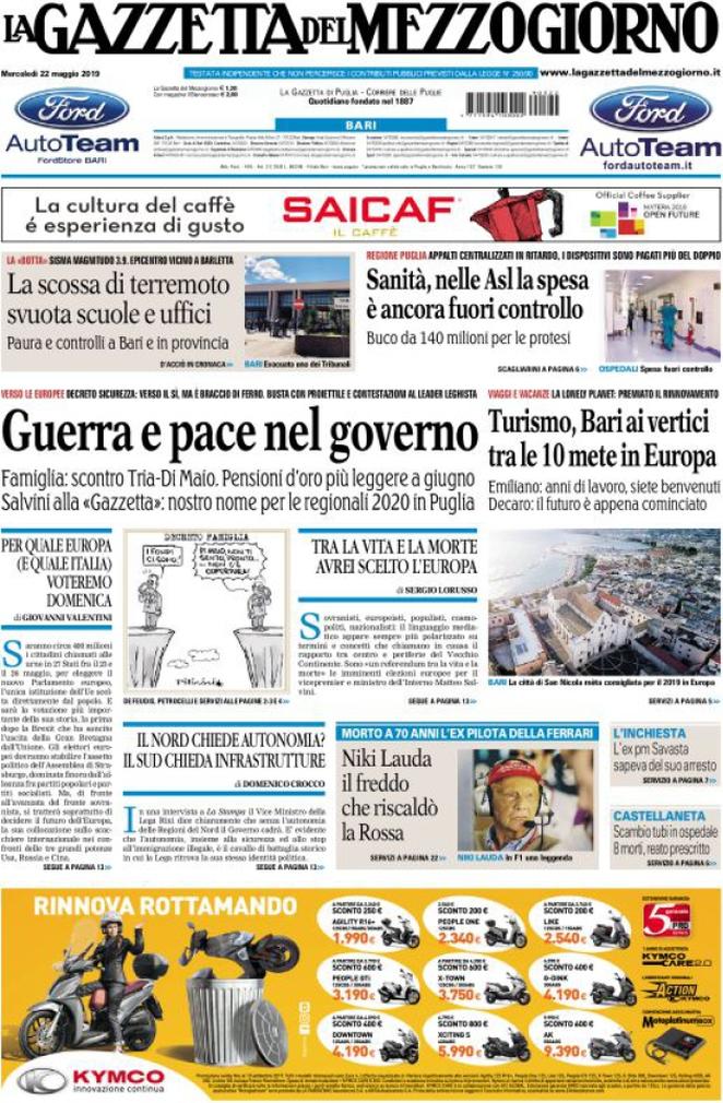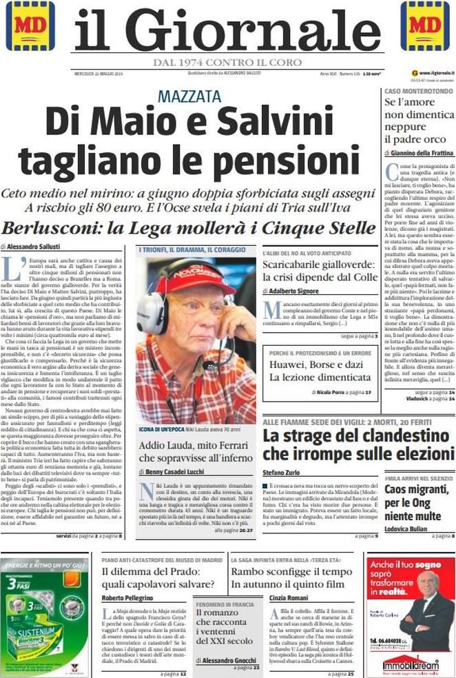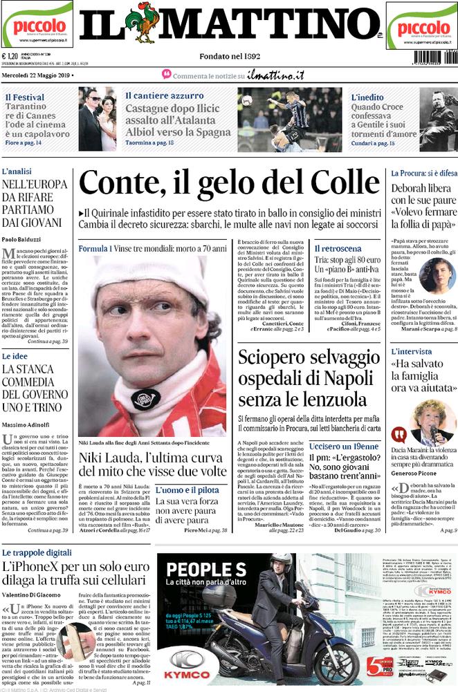 Rassegna delle prime pagine dei principali giornali italiani in edicola di oggi 22 maggio 2019