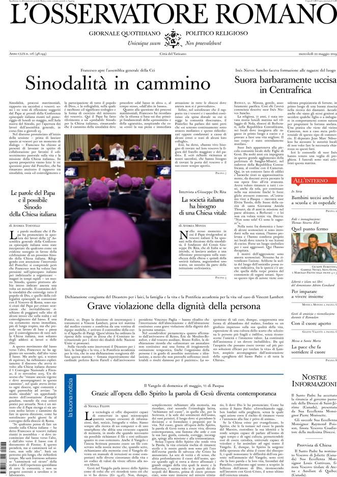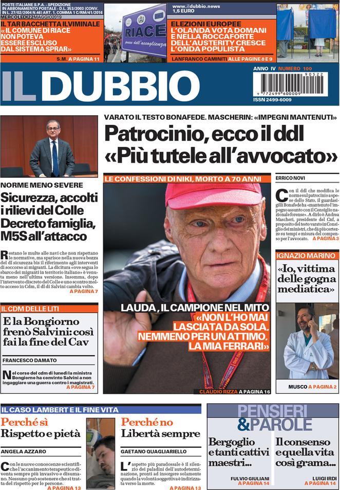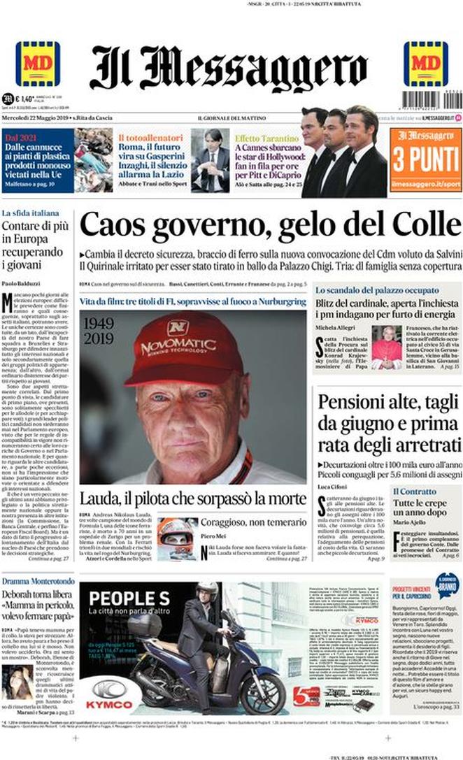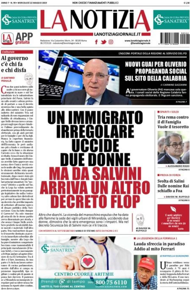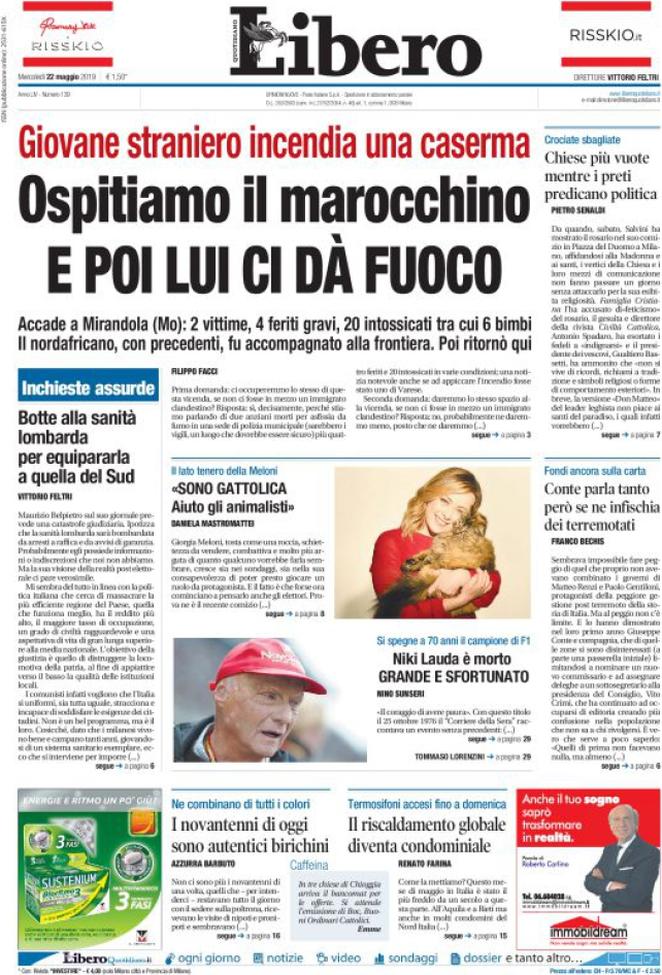 Rassegna delle prime pagine dei principali giornali italiani in edicola di oggi 22 maggio 2019