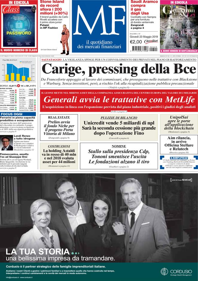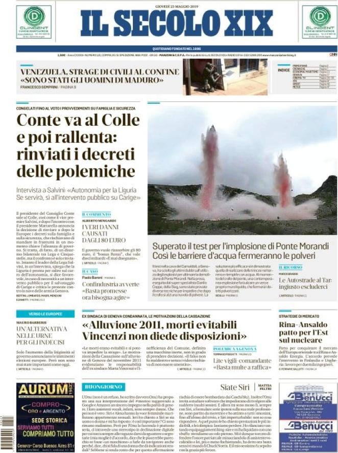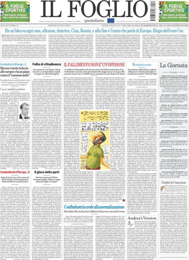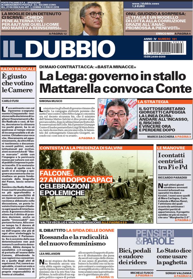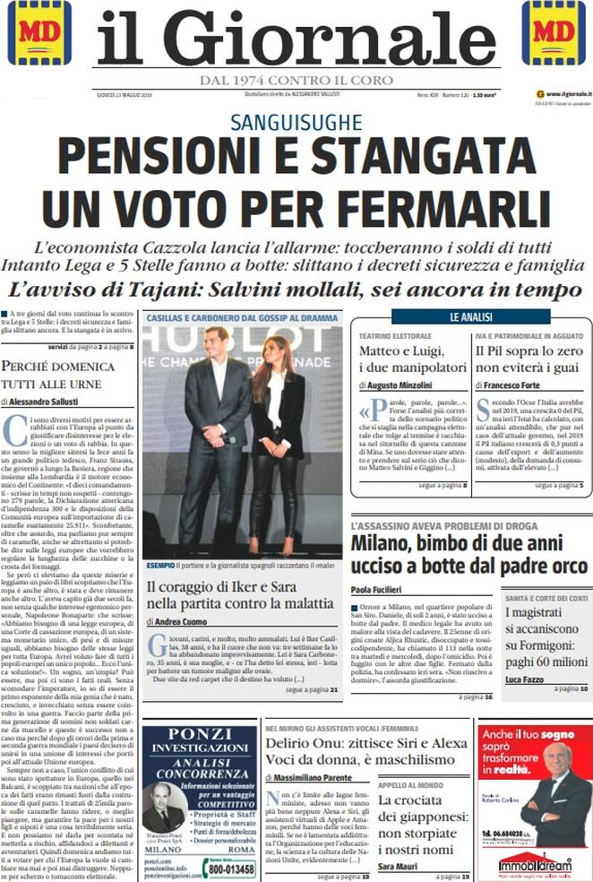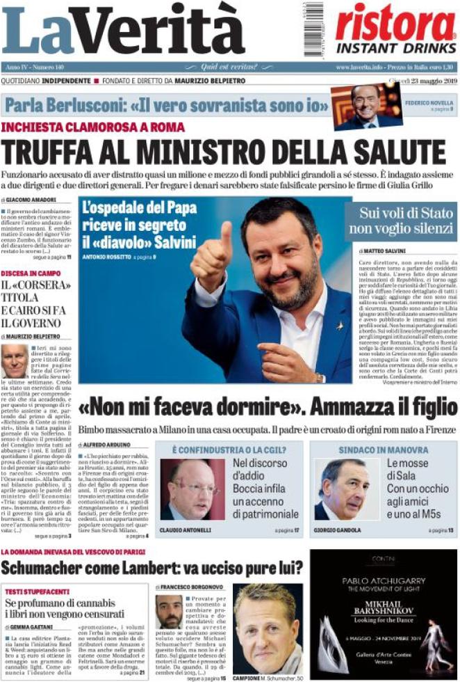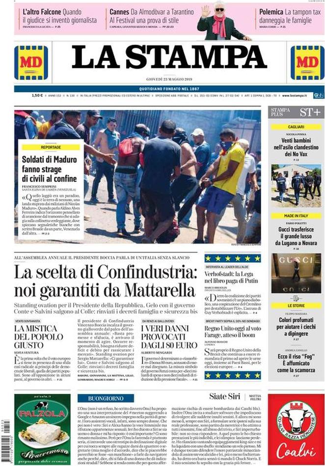 Rassegna delle prime pagine dei principali giornali italiani in edicola di oggi 23 maggio 2019