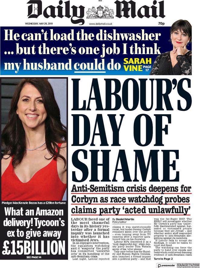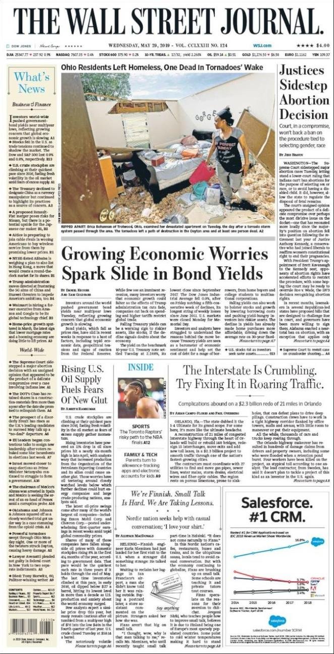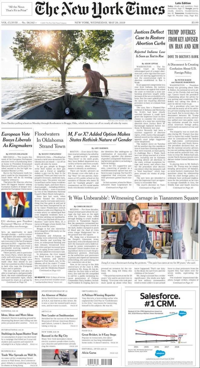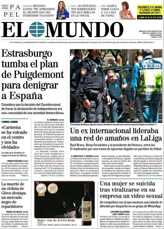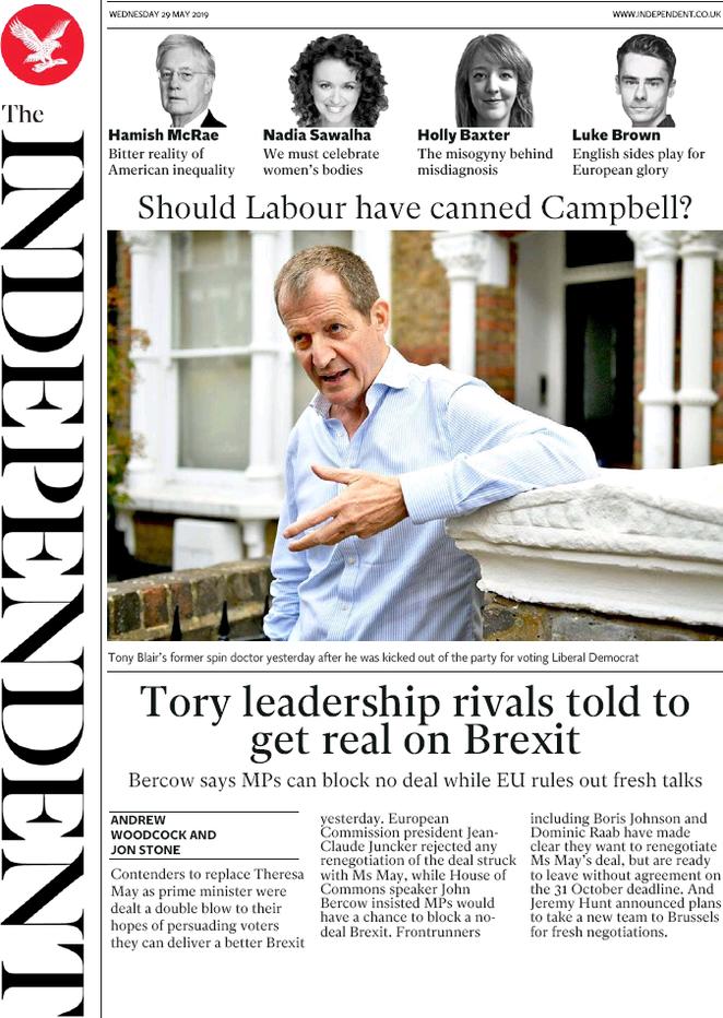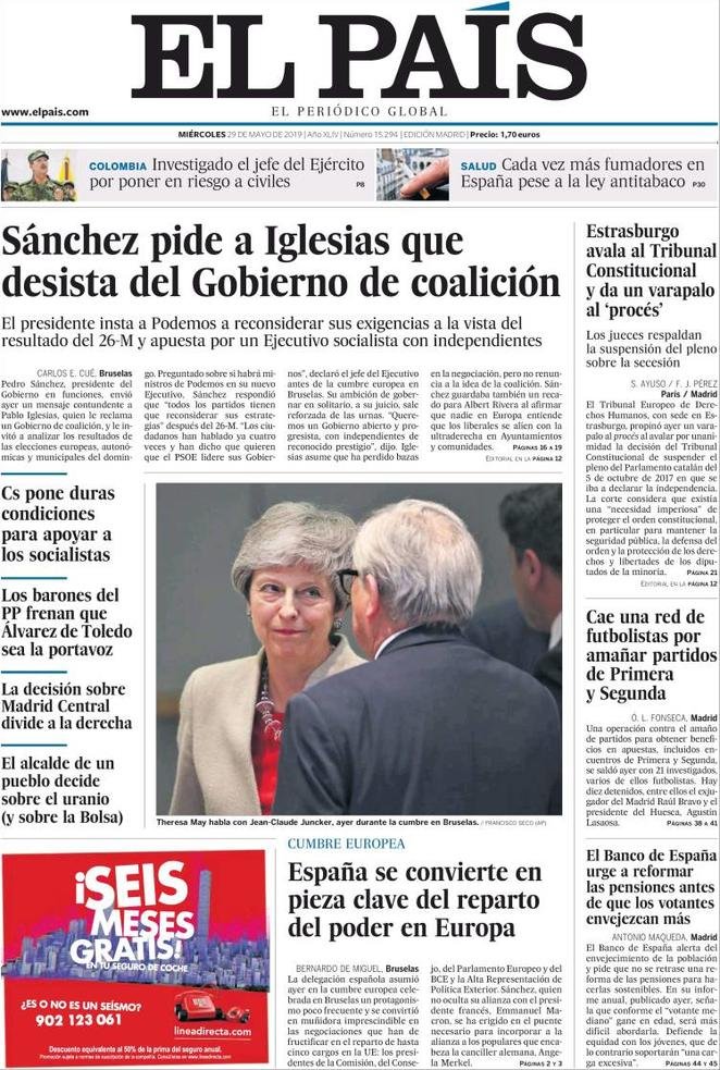 Rassegna delle prime pagine dei principali giornali esteri in edicola di oggi 29 maggio 2019