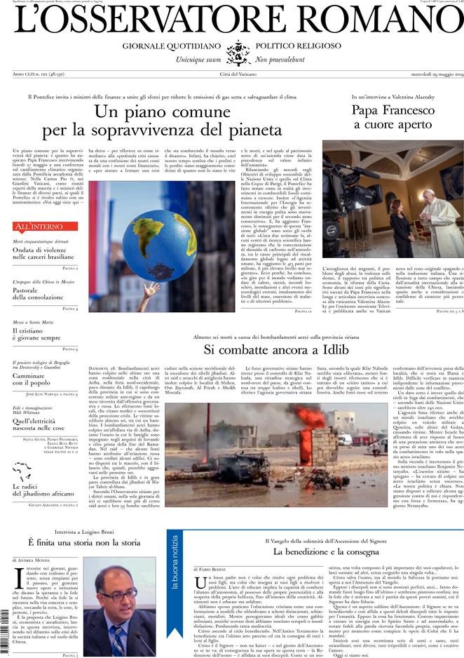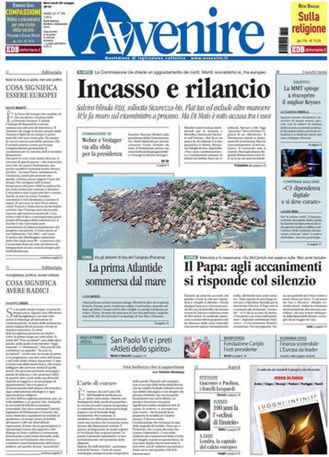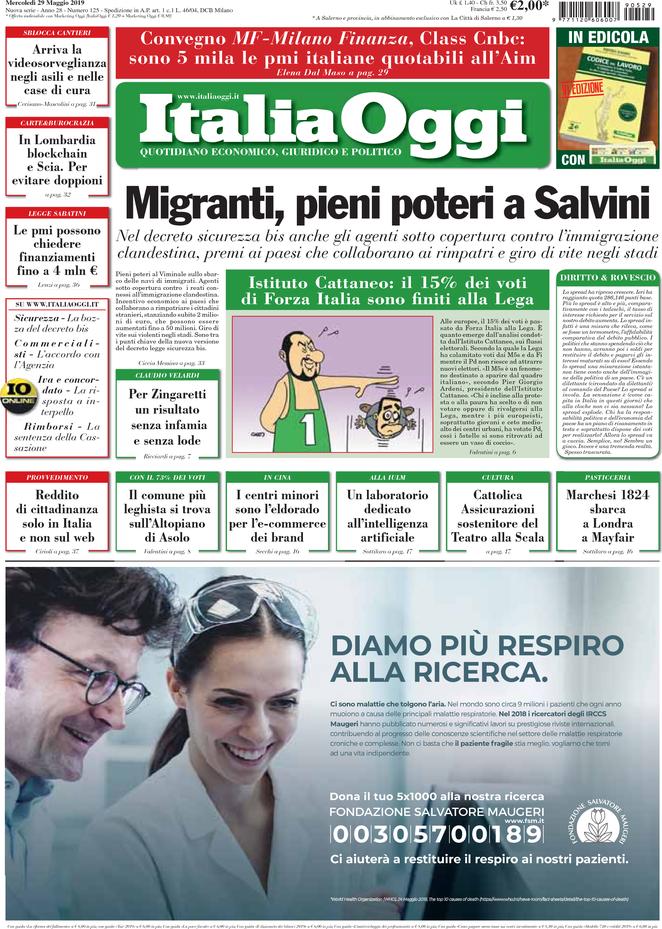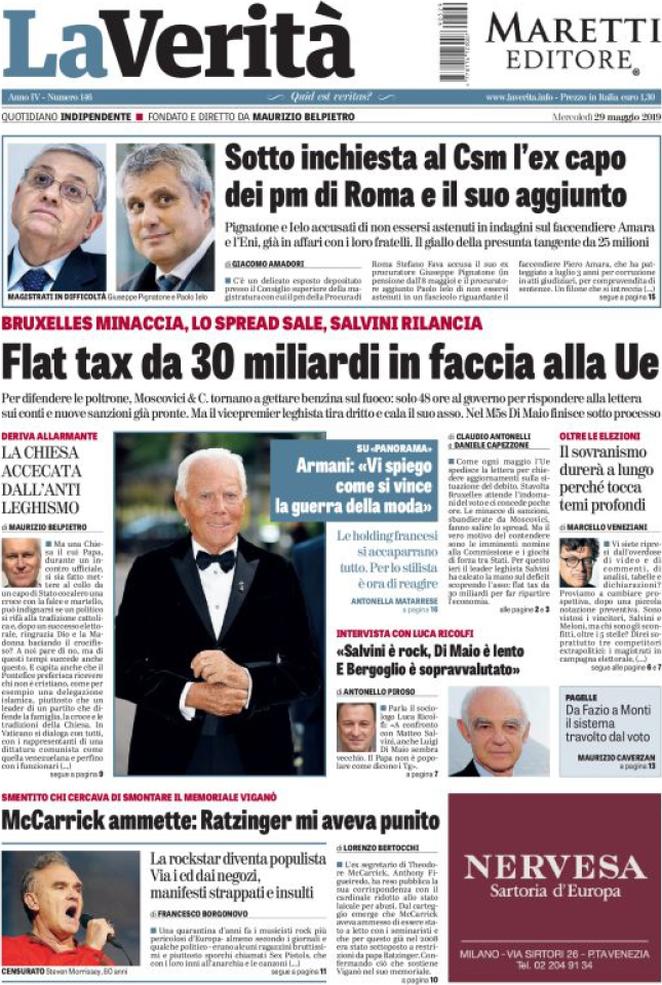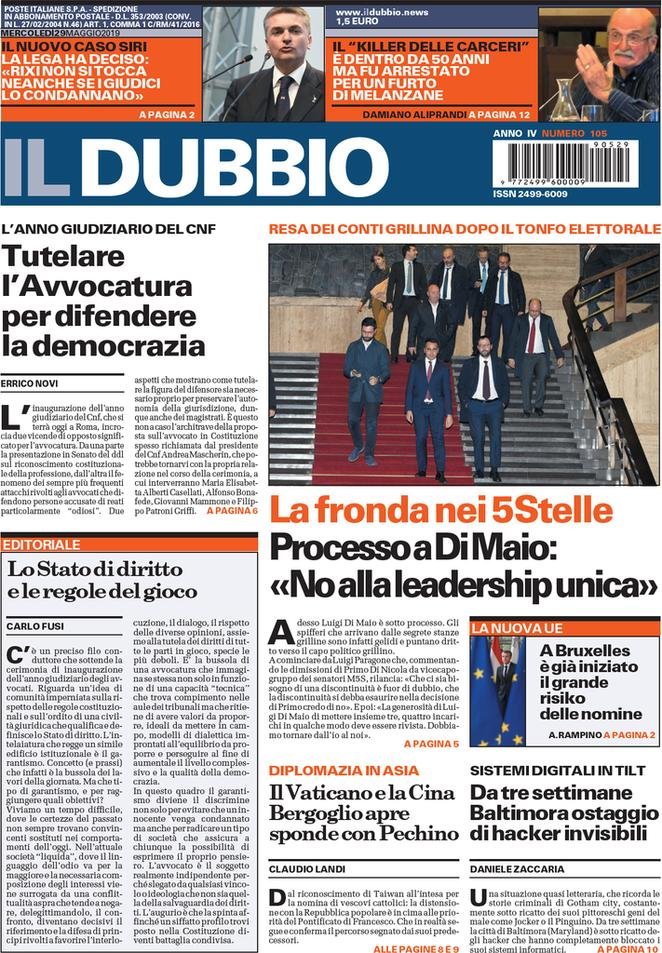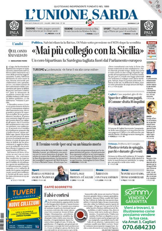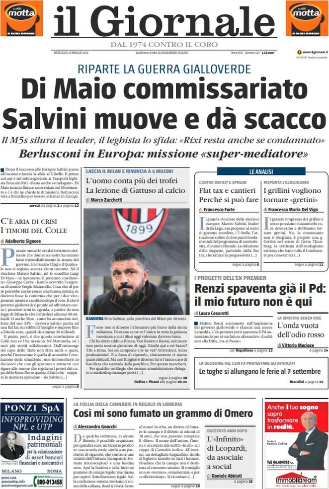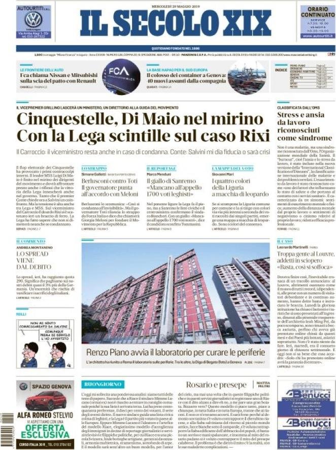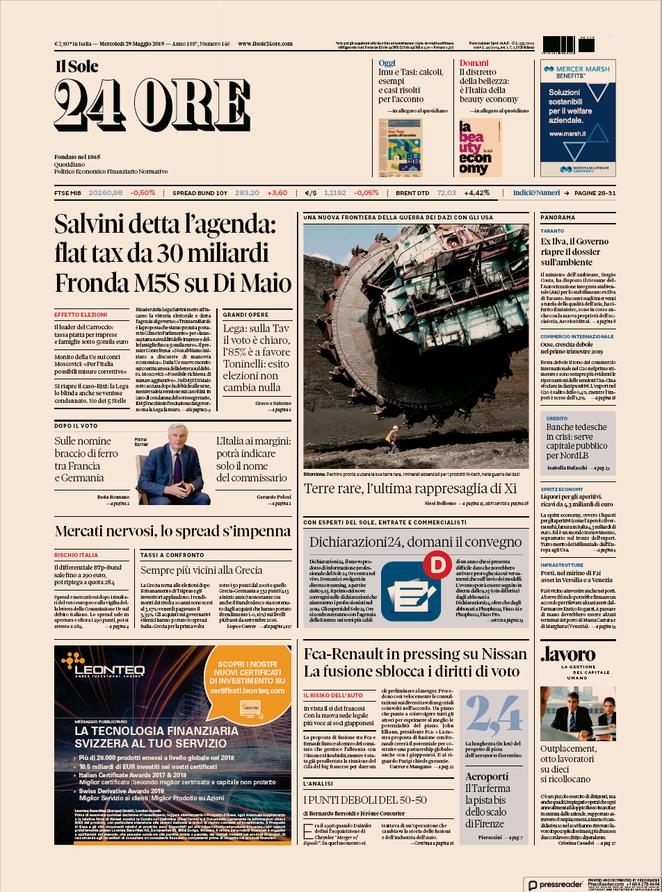 Rassegna delle prime pagine dei principali giornali italiani in edicola di oggi 29 maggio 2019