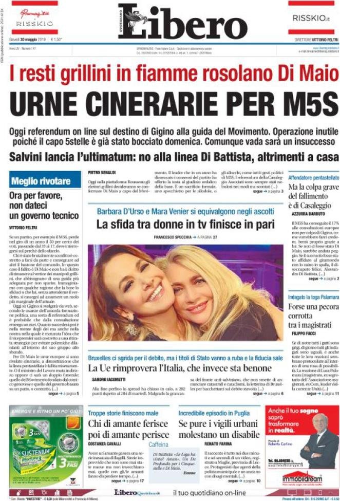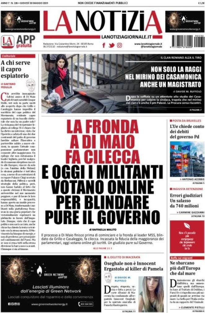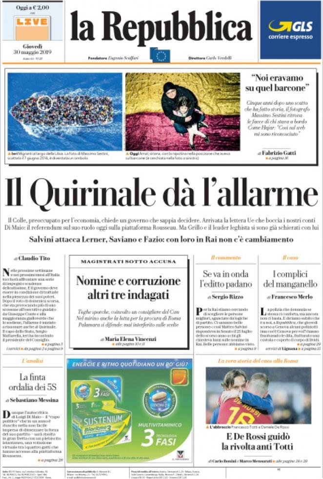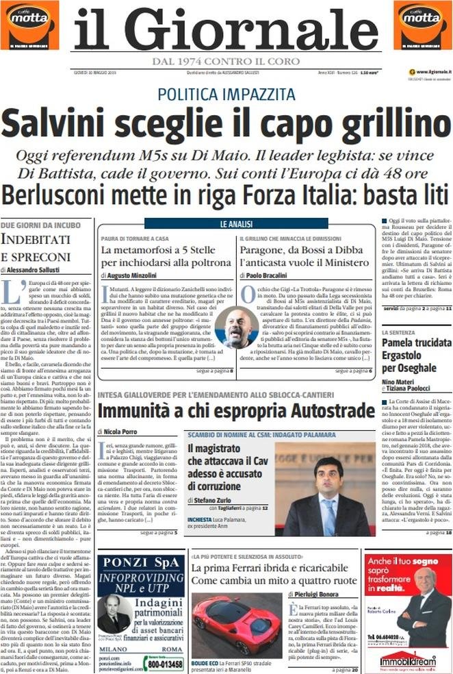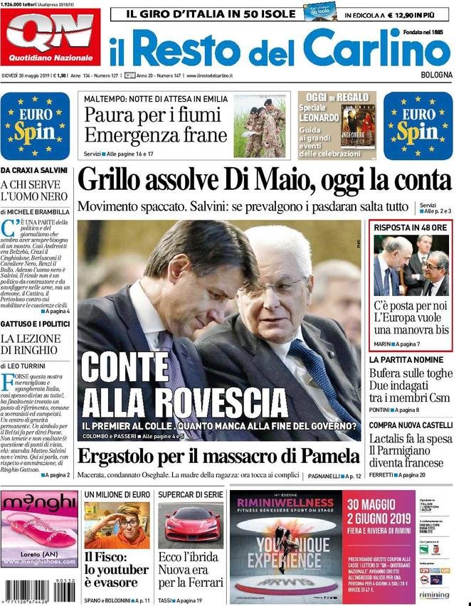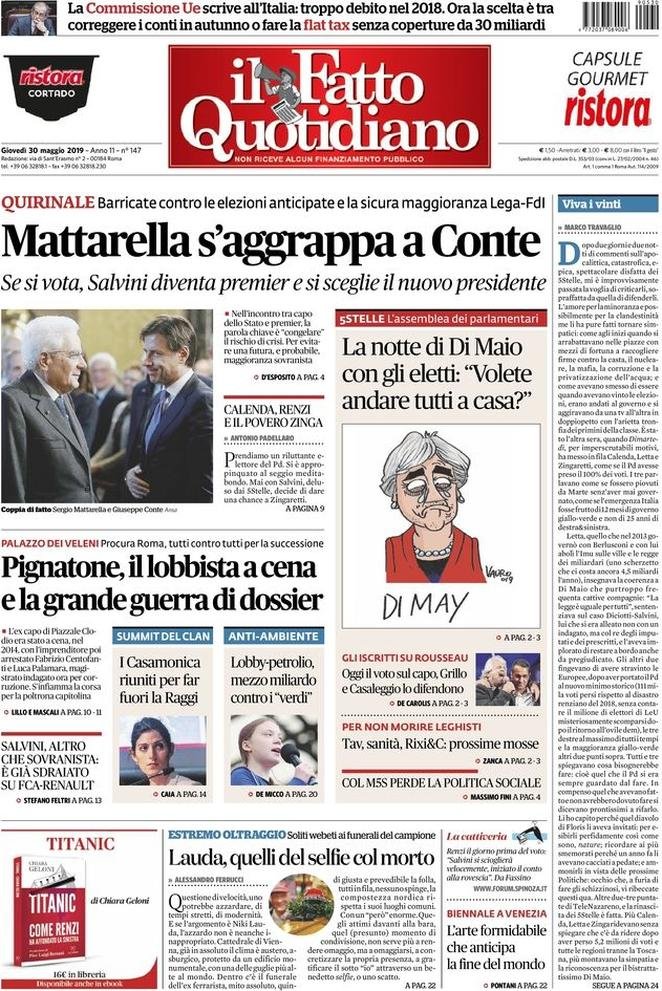 30 maggio: prime pagine Italia