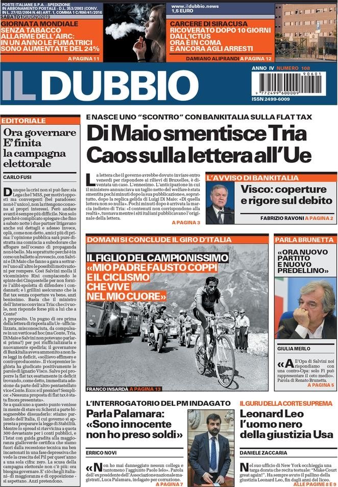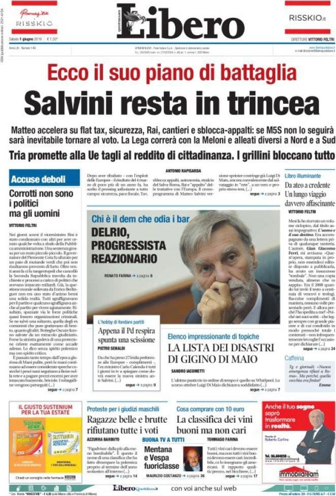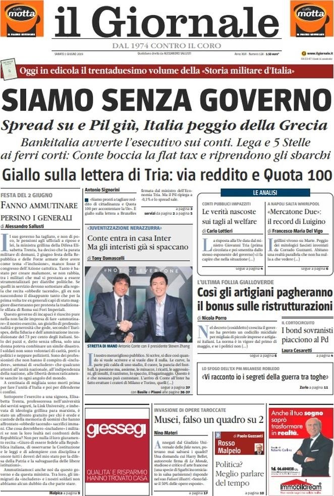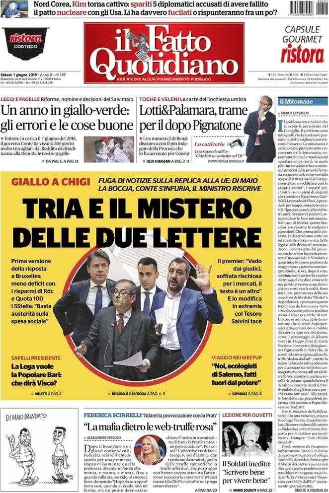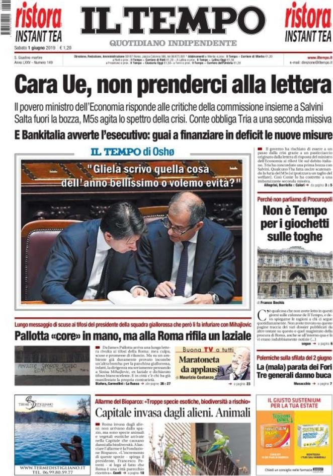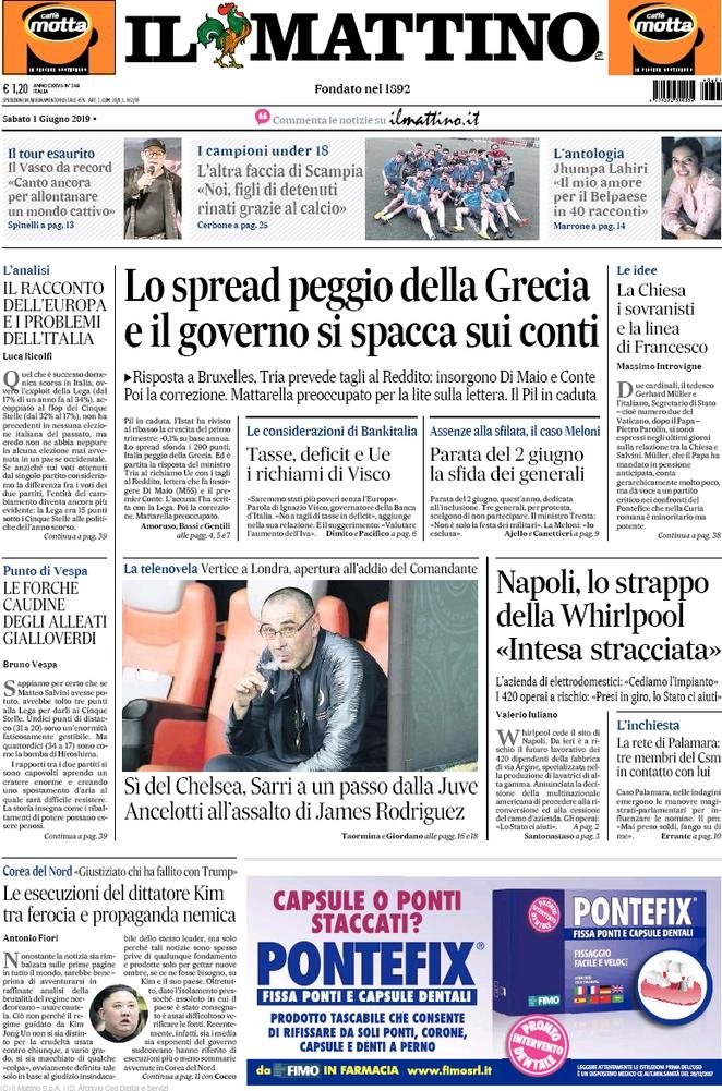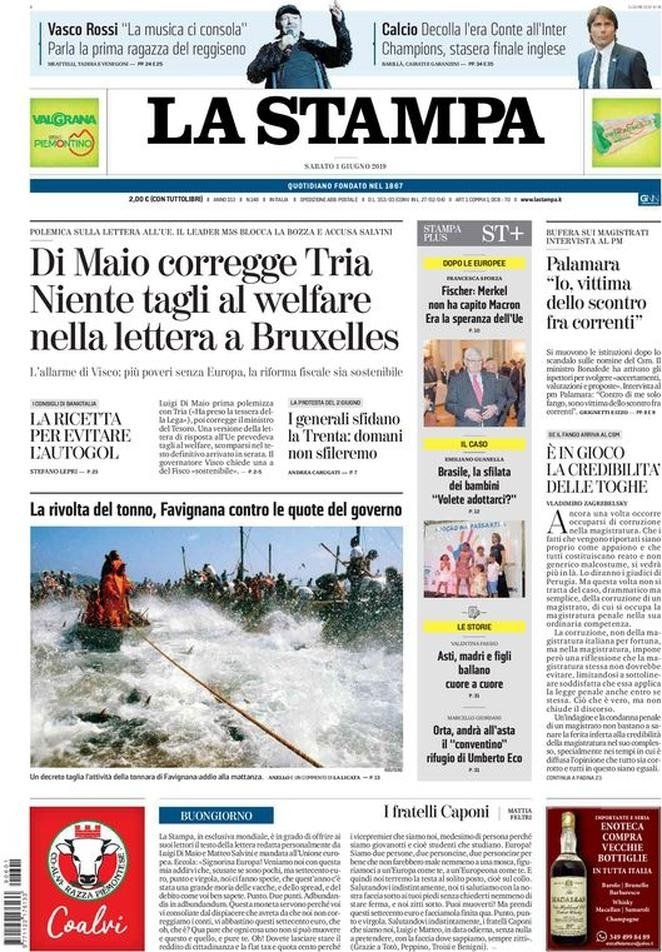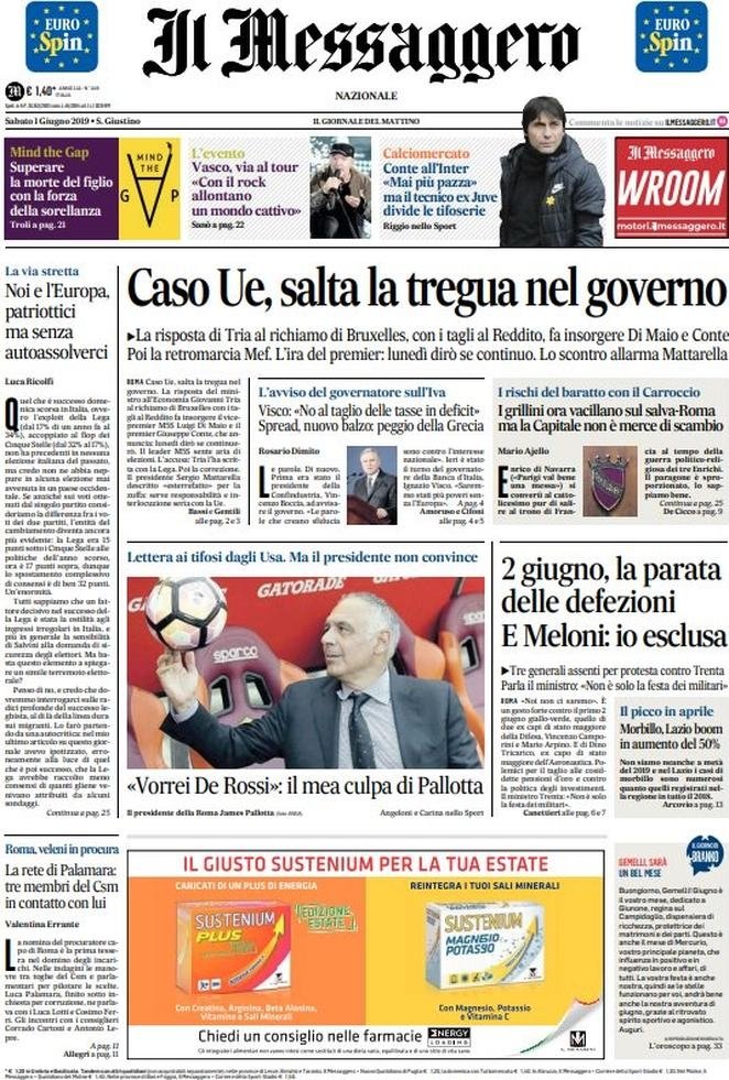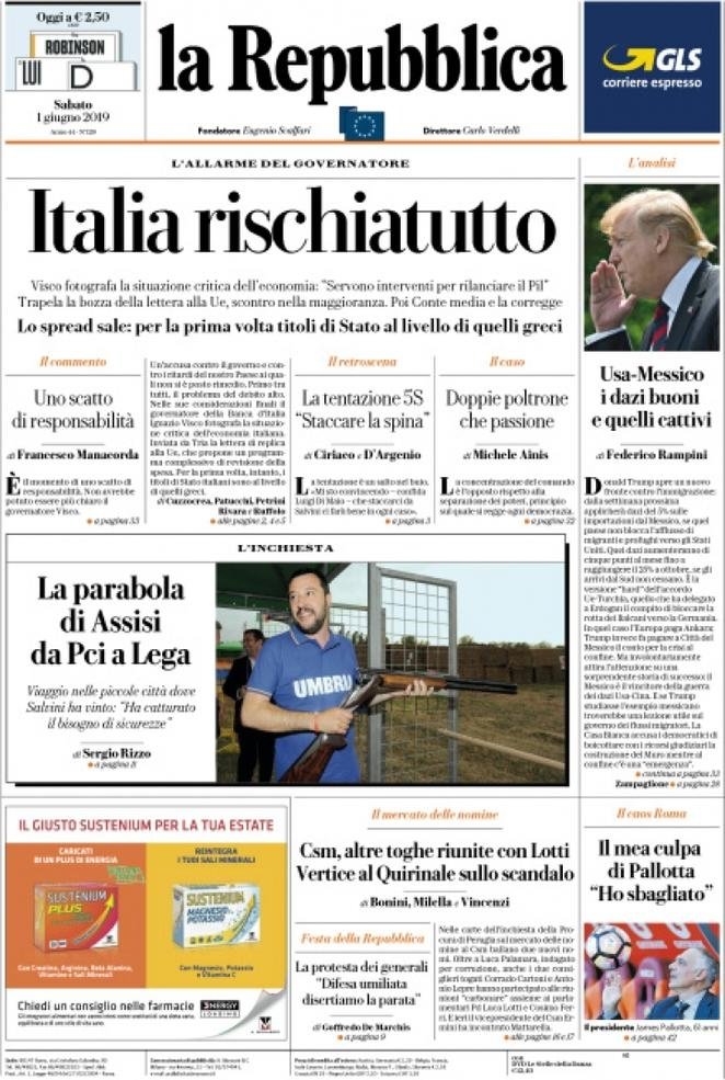 1 giugno: prime pagine Italia