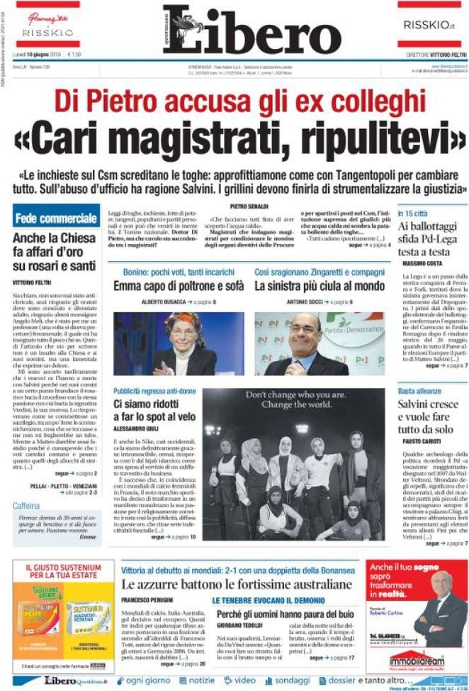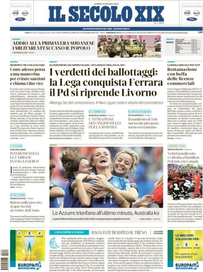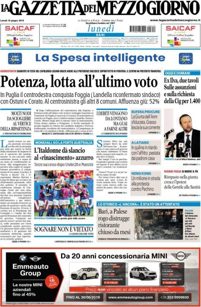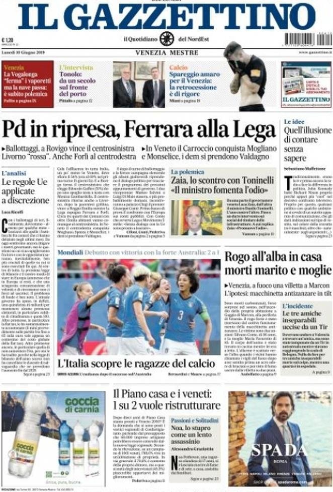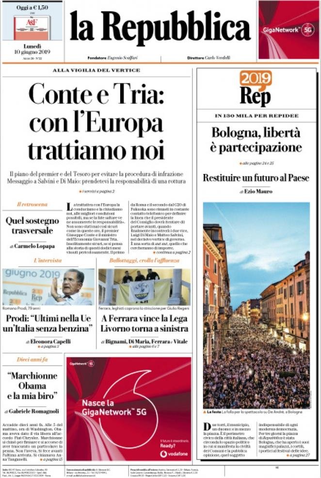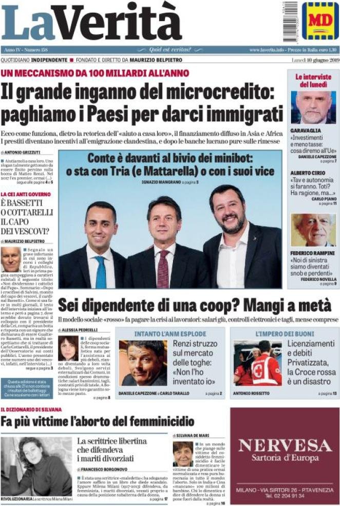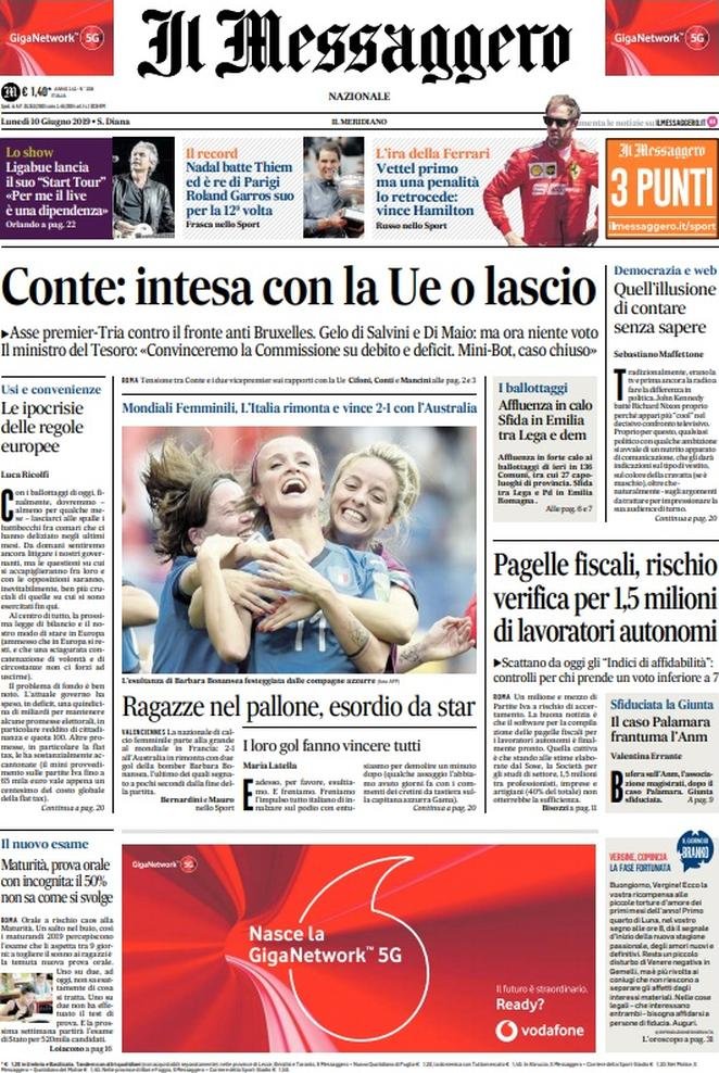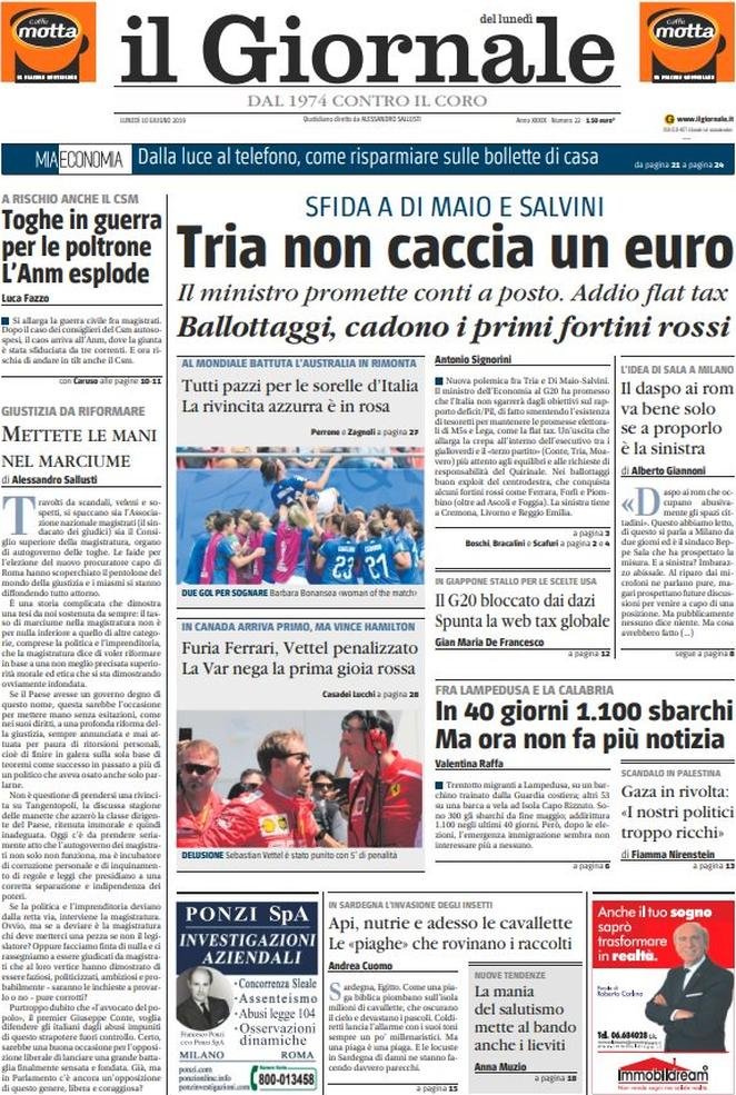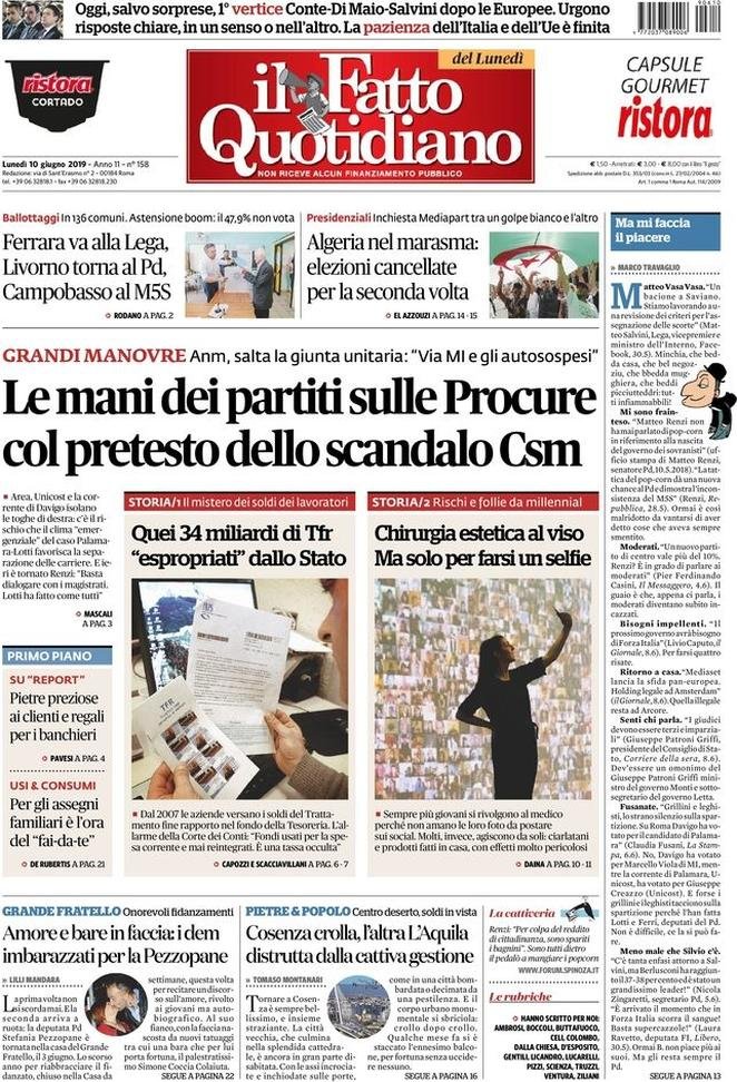 10 giugno: prime pagine Italia