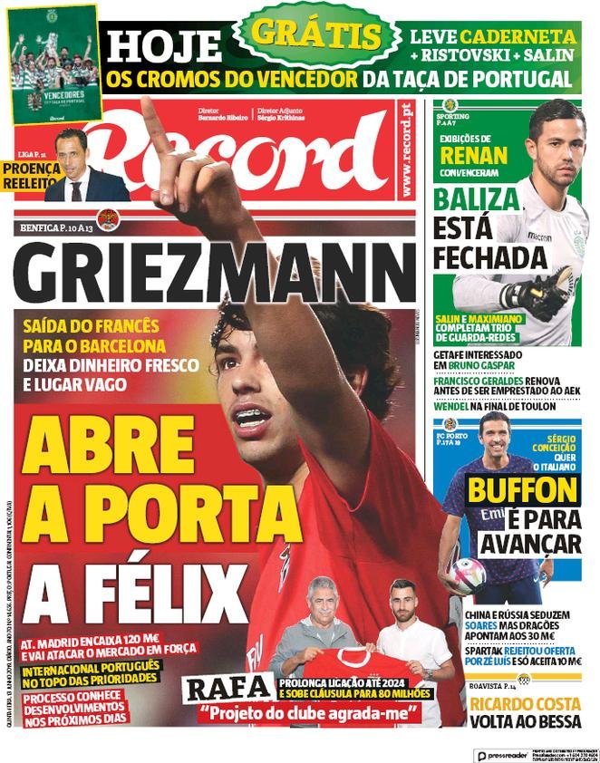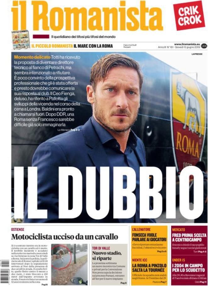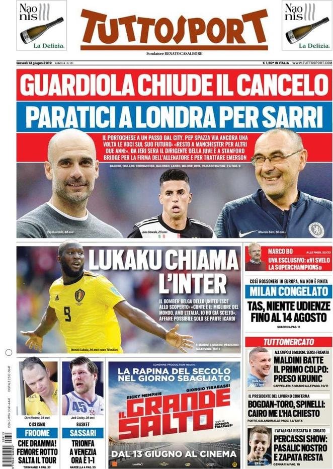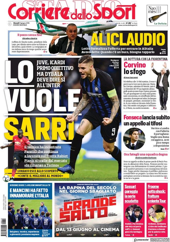 13 giugno: prime pagine sport
