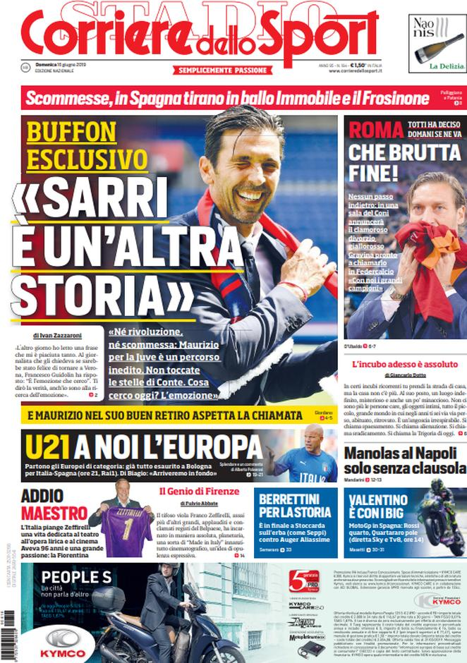 16 giugno prime pagine sport