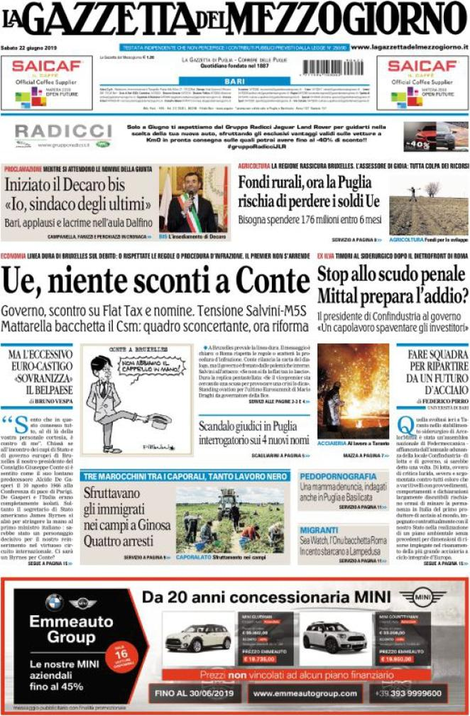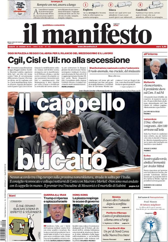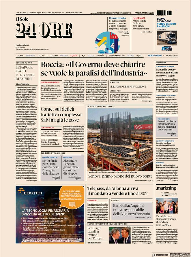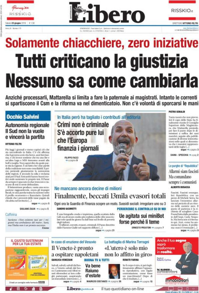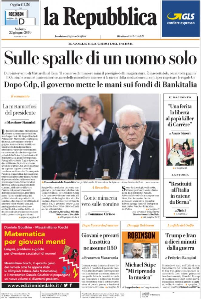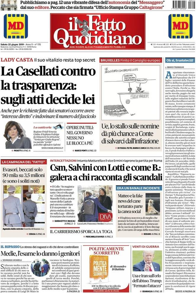 22 giugno 2019: stampa italiana