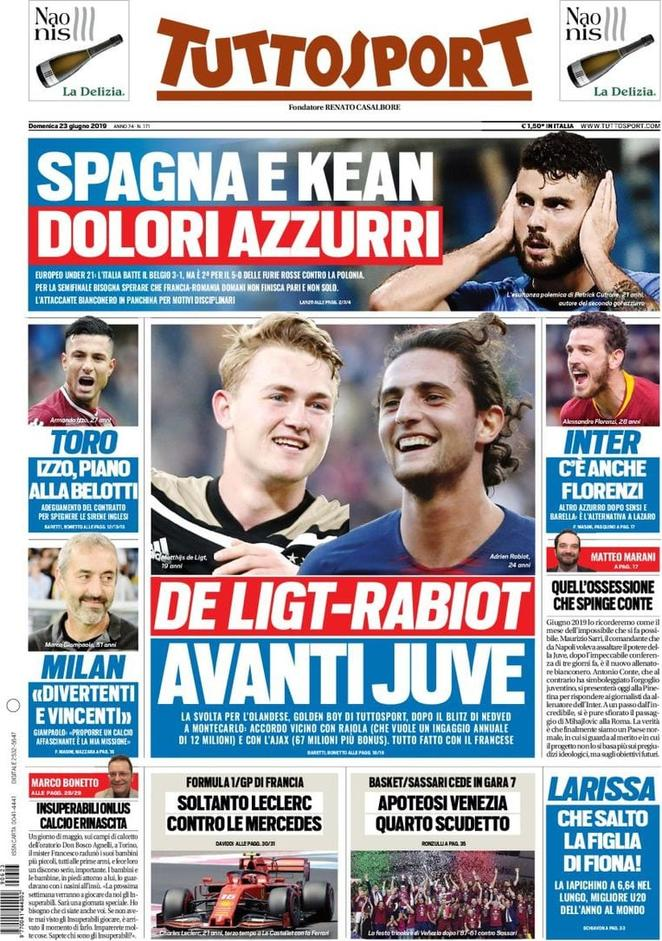 23 giugno: prime pagine sportive