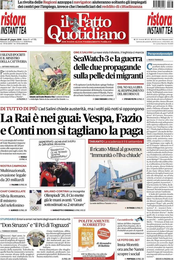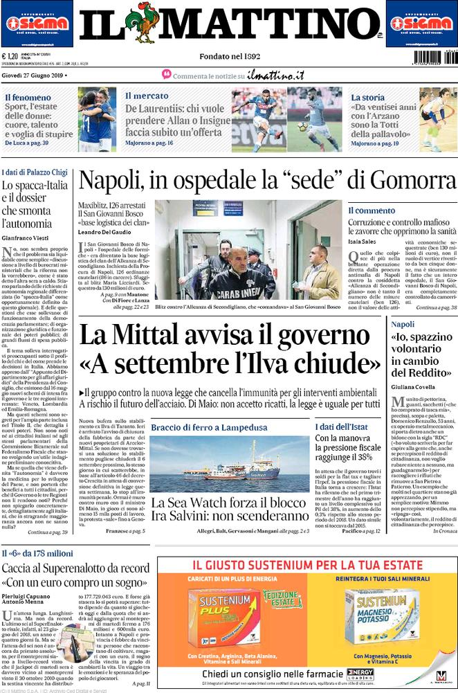 Avvenire, Fabrizio Sbardella, il dubbio, Il fatto quotidiano, Il Foglio, Il Gazzettino, Il Giornale, Il Mattino, Il Messaggero, Il Resto del Carlino, Il Secolo XIX, Il sole 24 ore, Il Tempo, ilcontadinodimontagna, Italia Oggi, La Gazzetta del Mrzzogiorno, La Notizia, La Repubblica, La Stampa, La Verità, Libero, MF