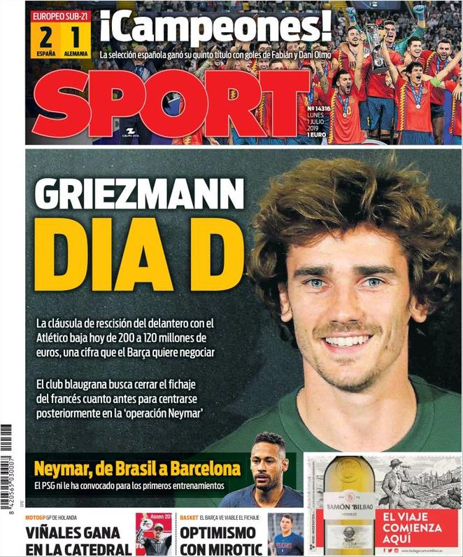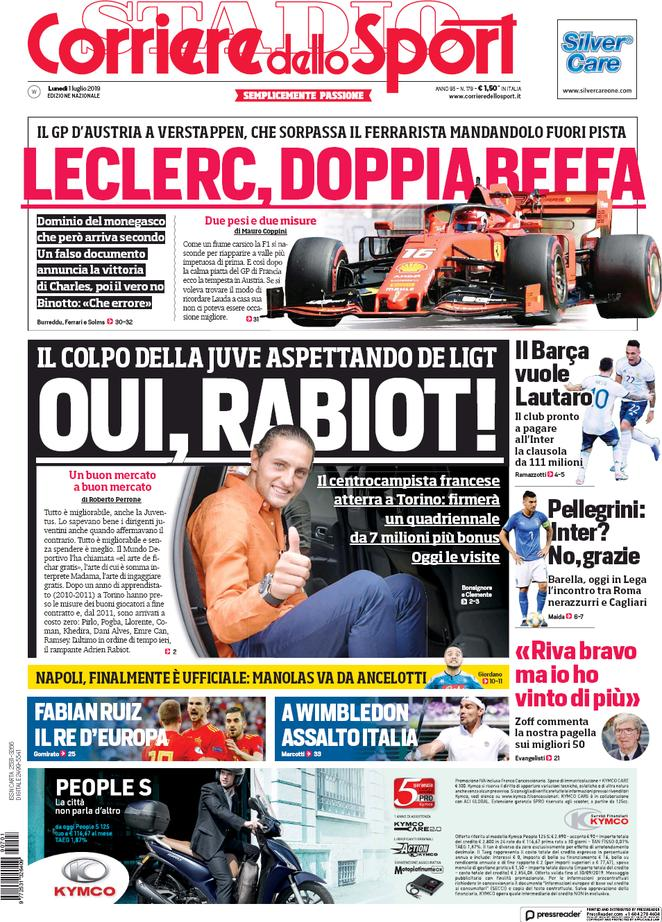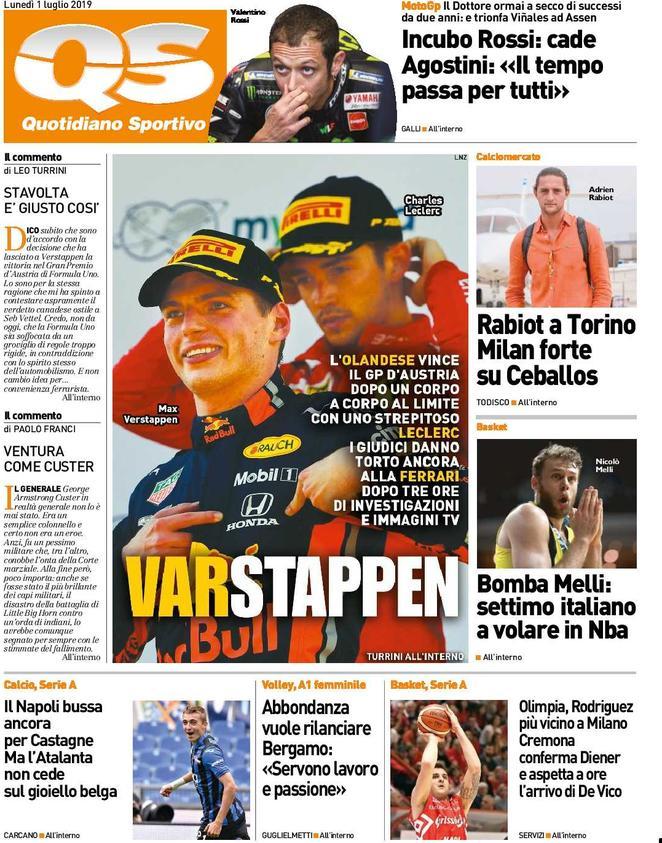 1 luglio: prime pagine sport