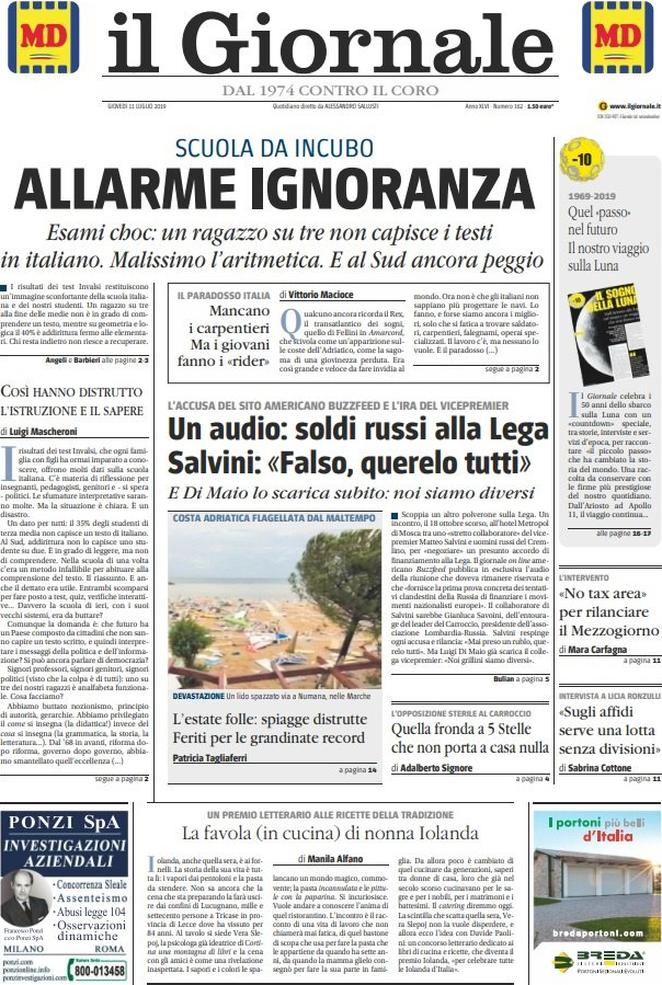 Le prime pagine dei quotidiani nazionali in edicola oggi