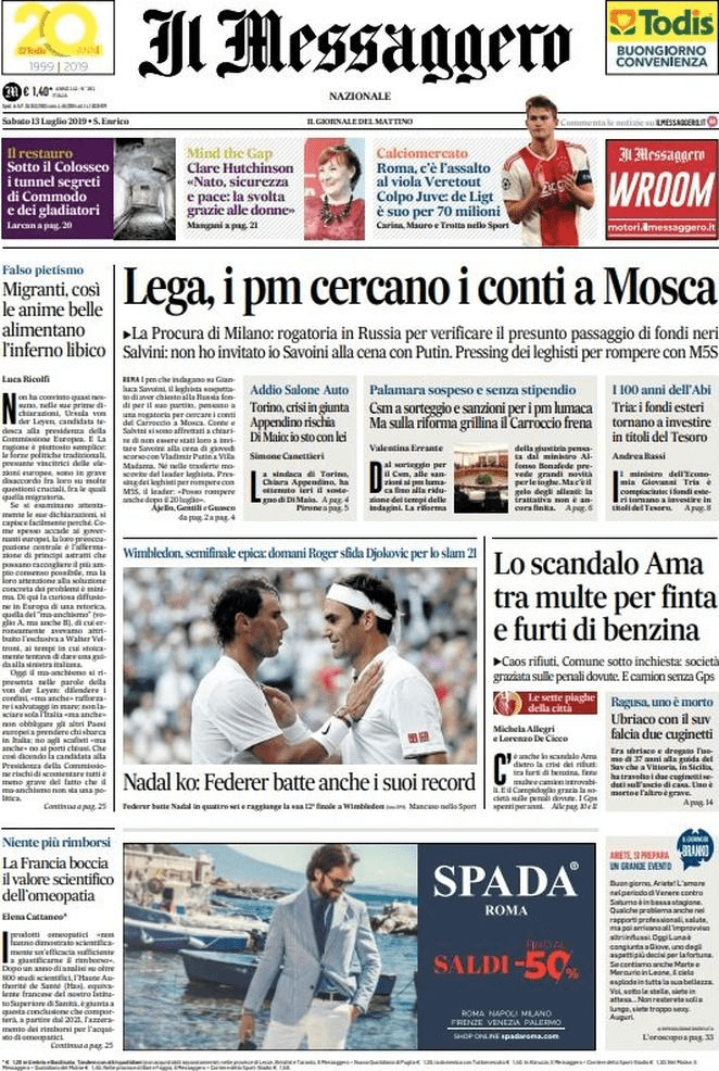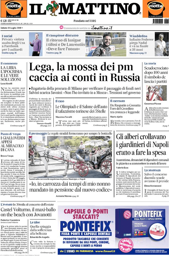 e prime pagine dei quotidiani nazionali in edicola oggi