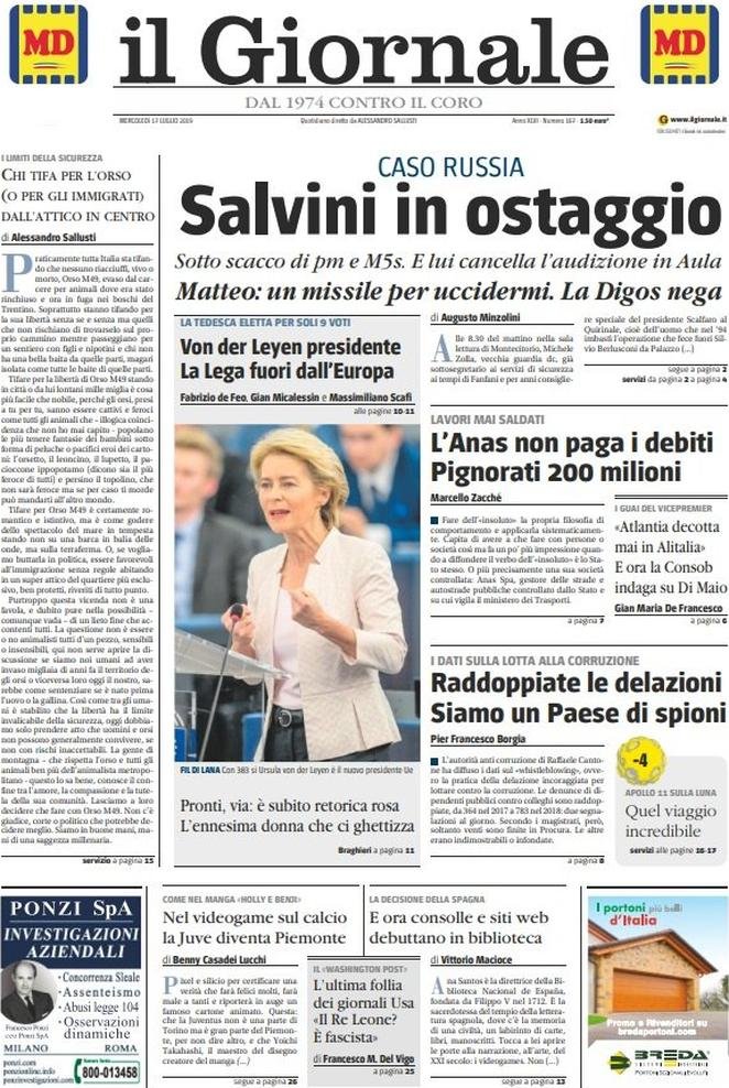 17 luglio: prime pagine Italia