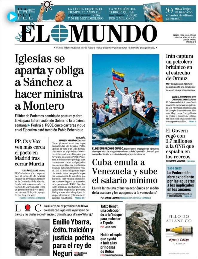 Europa, Mondo, prime pagine