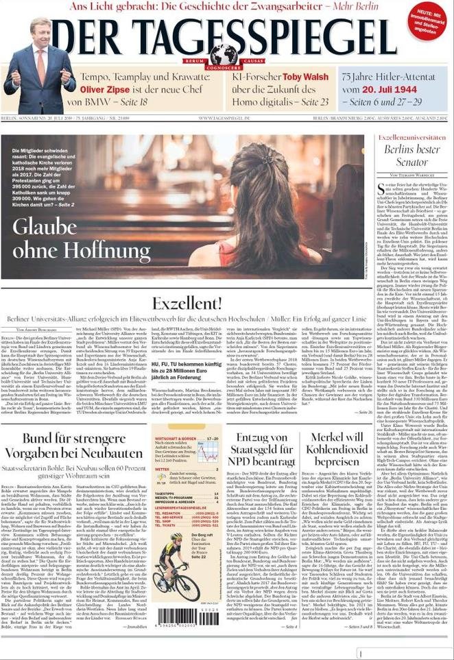 20 luglio: prime pagine estero