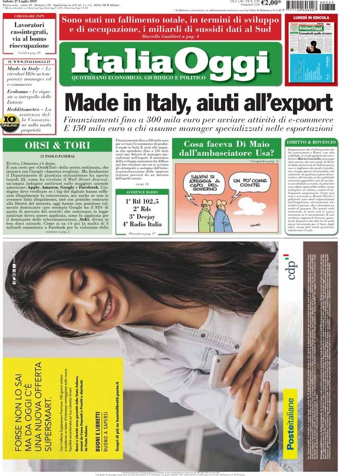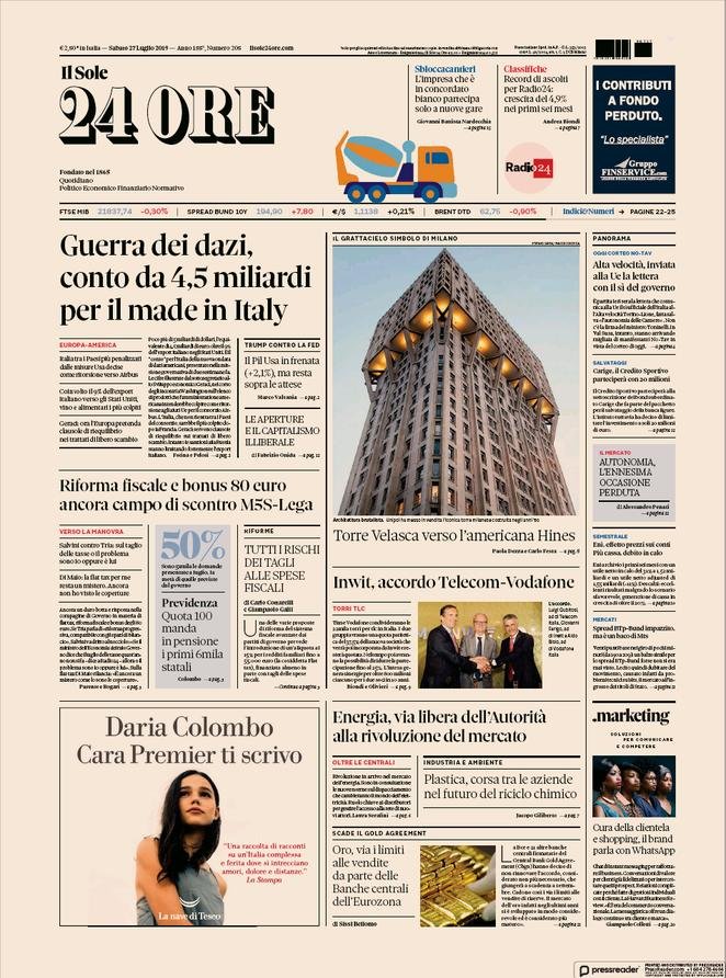 Le prime pagine dei quotidiani nazionali in edicola oggi