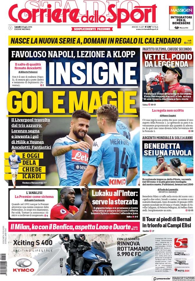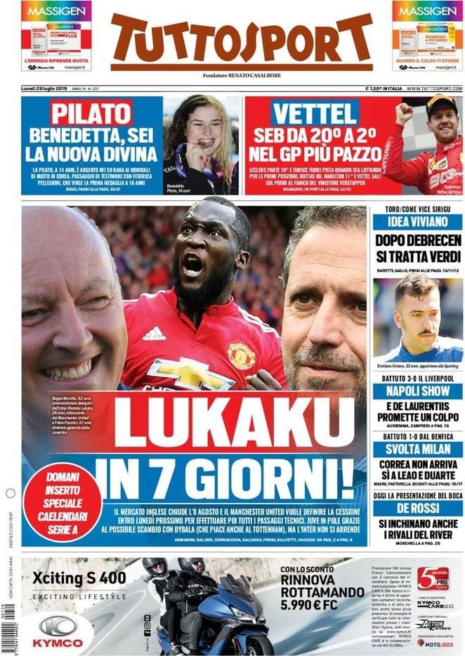 Le prime pagine dei quotidiani sportivi in edicola oggi,