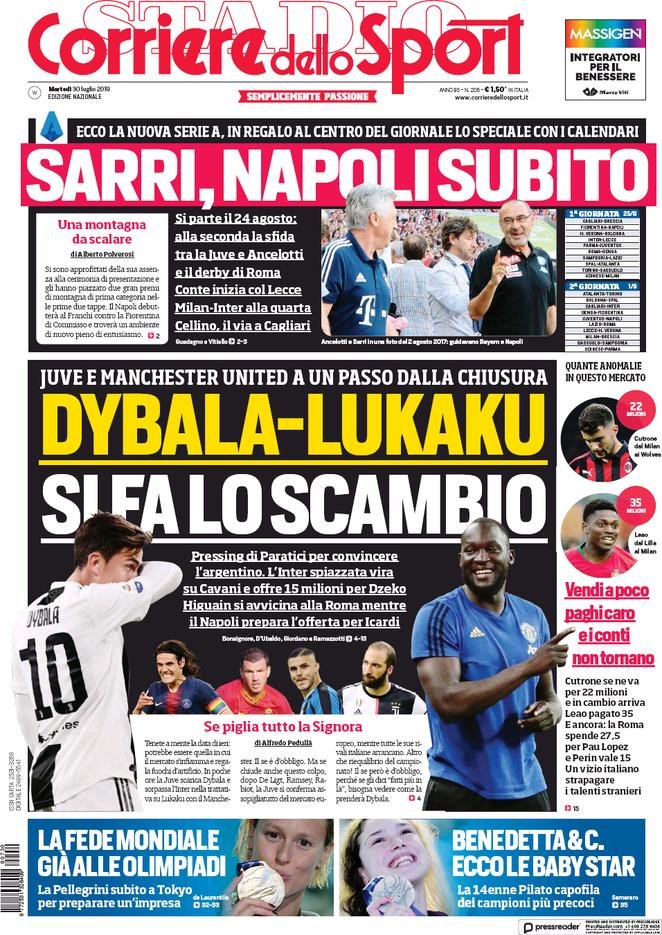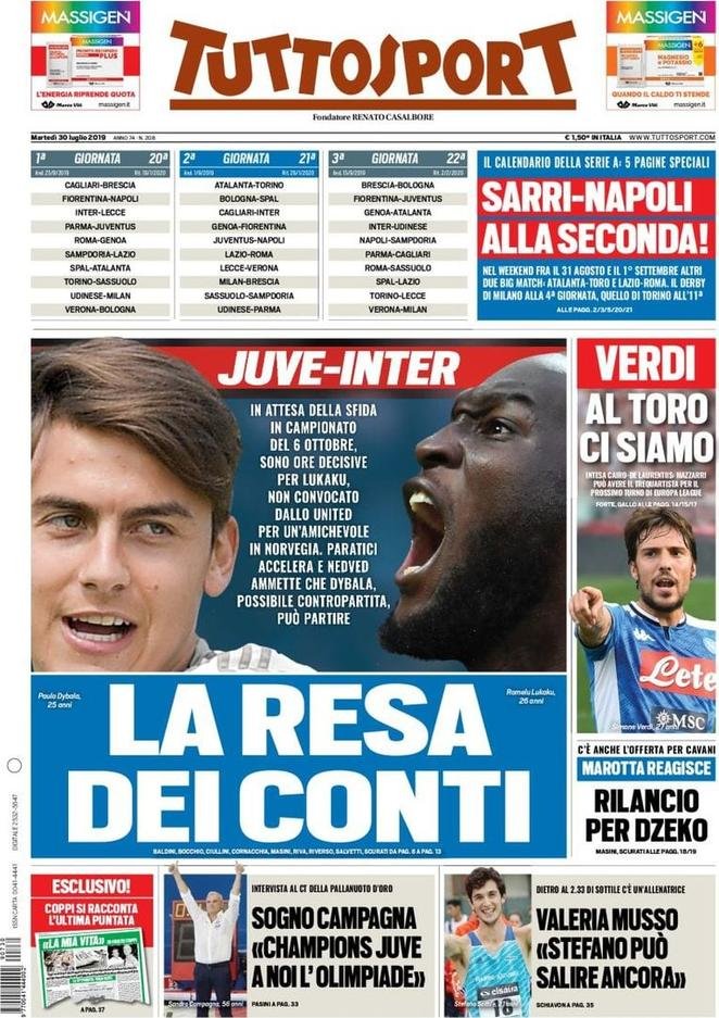 Le prime pagine dei quotidiani sportivi in edicola oggi