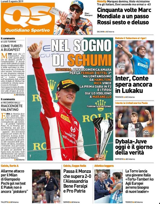 e prime pagine dei quotidiani sportivi in edicola oggi
