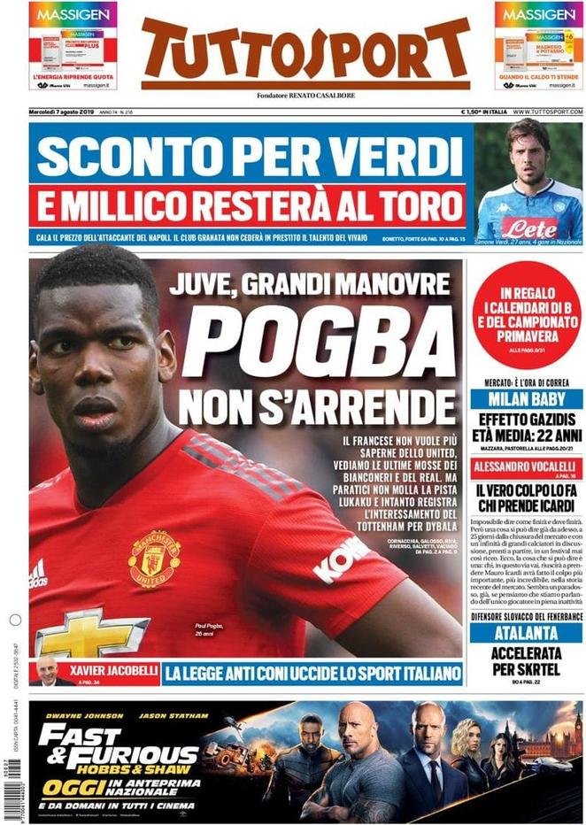 Le prime pagine dei quotidiani sportivi in edicola oggi