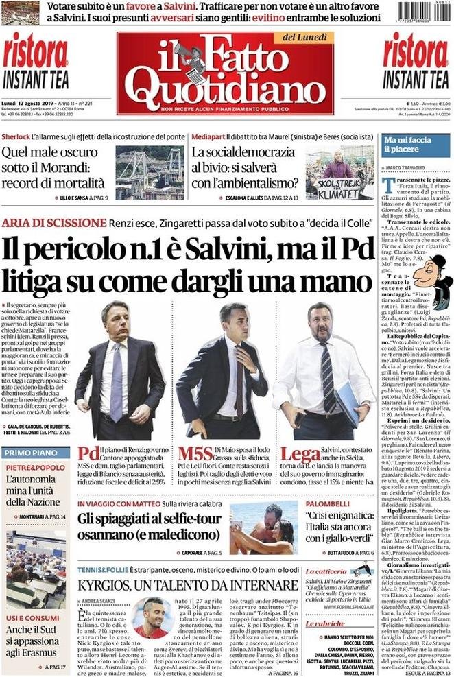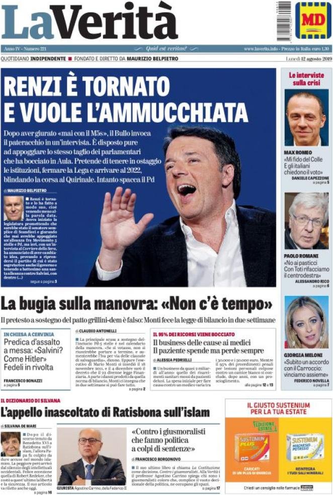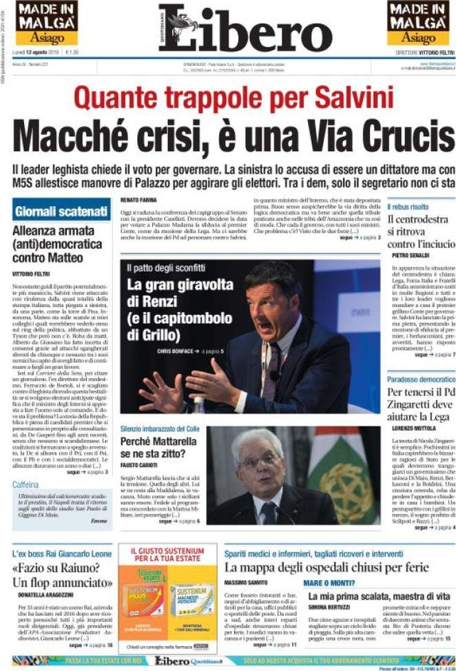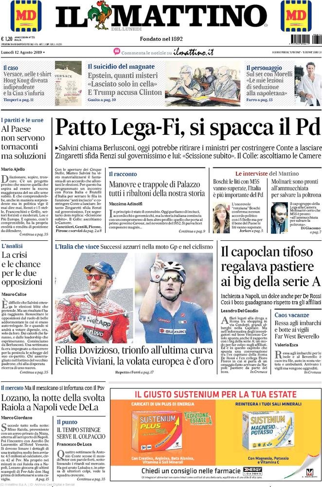 12 agosto: prime pagine Italia