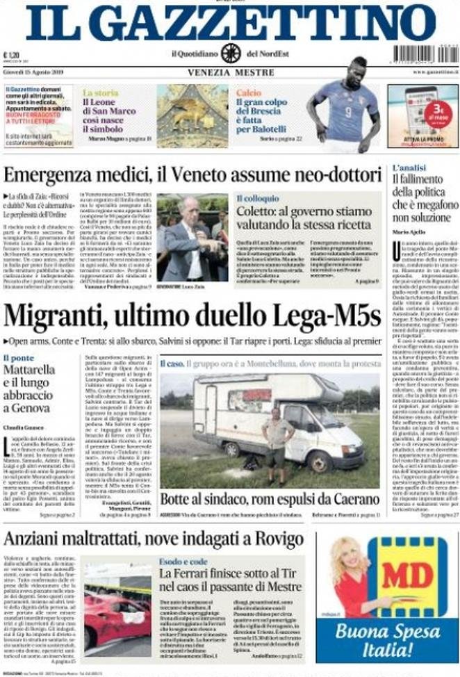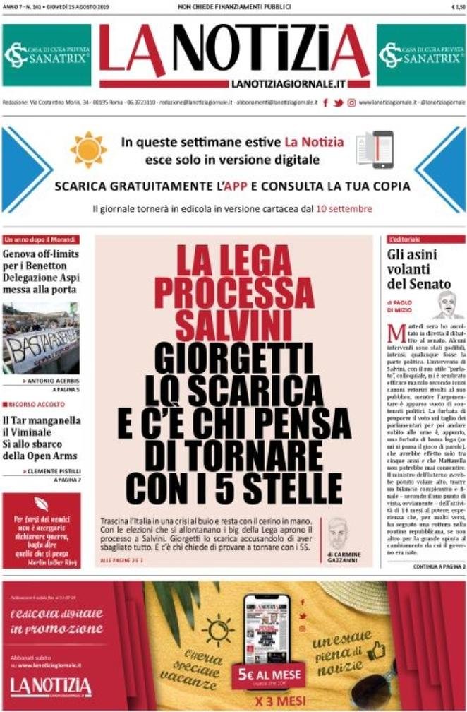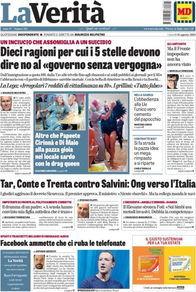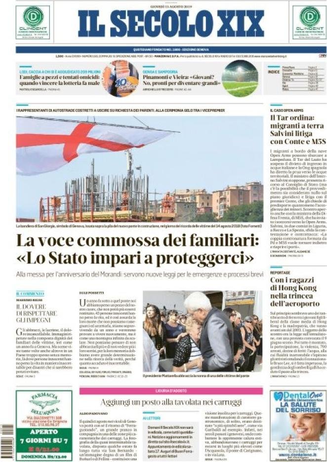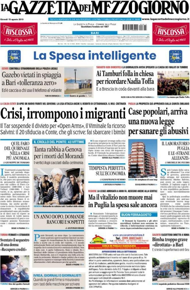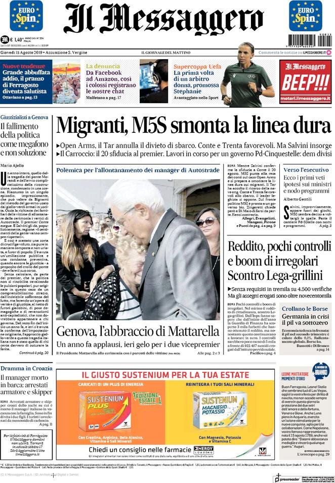15 agosto: prime pagine Italia