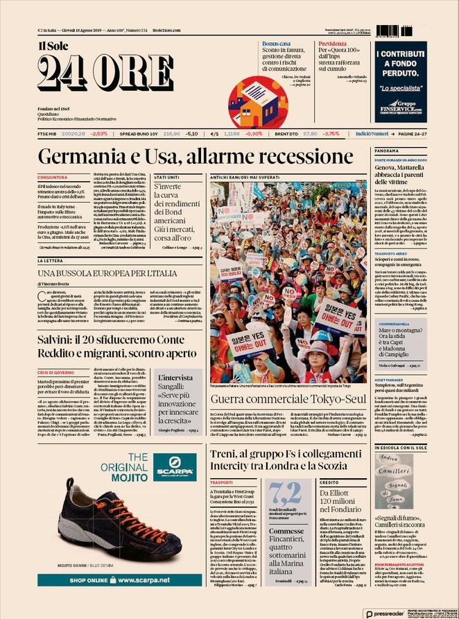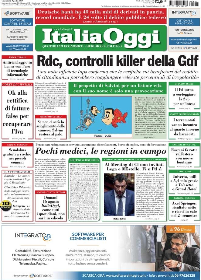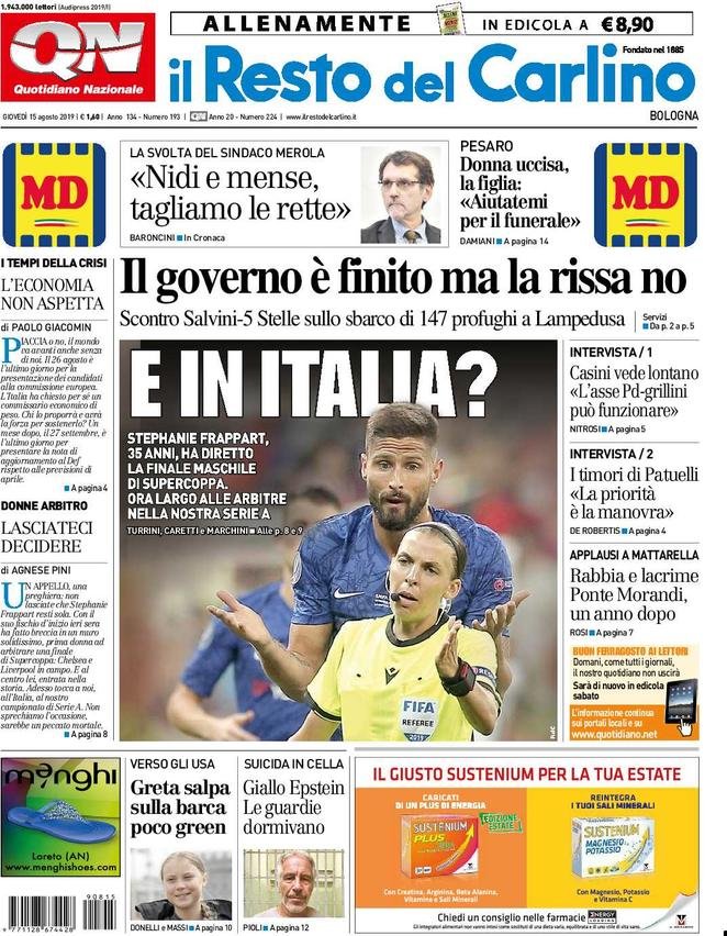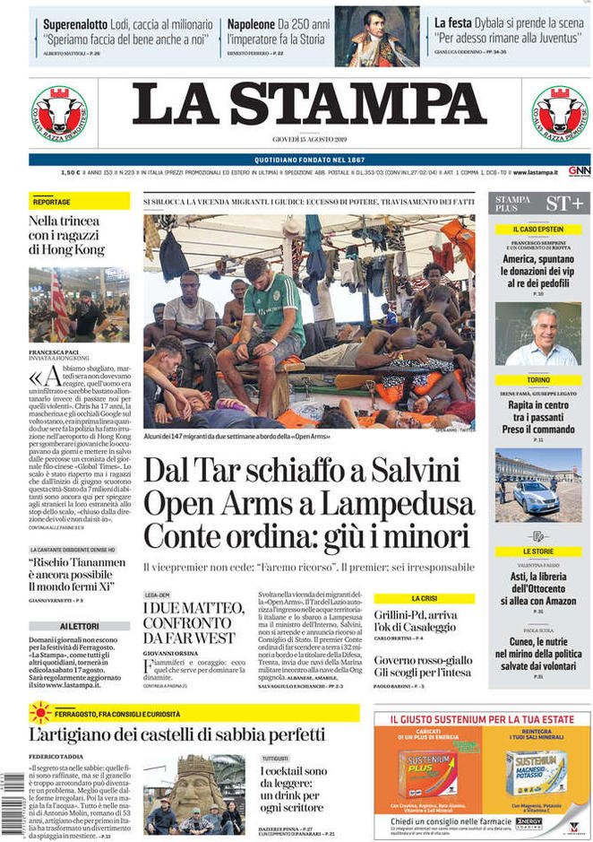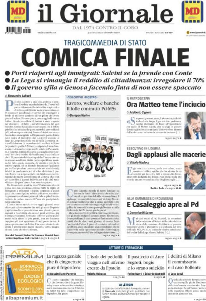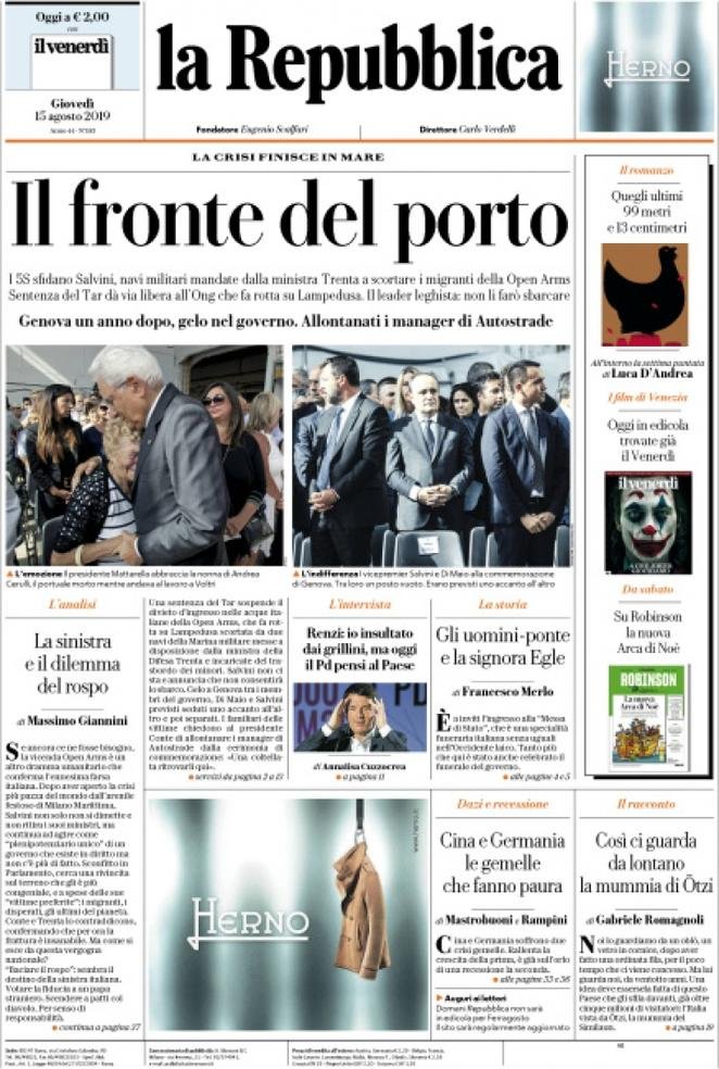 15 agosto: prime pagine Italia