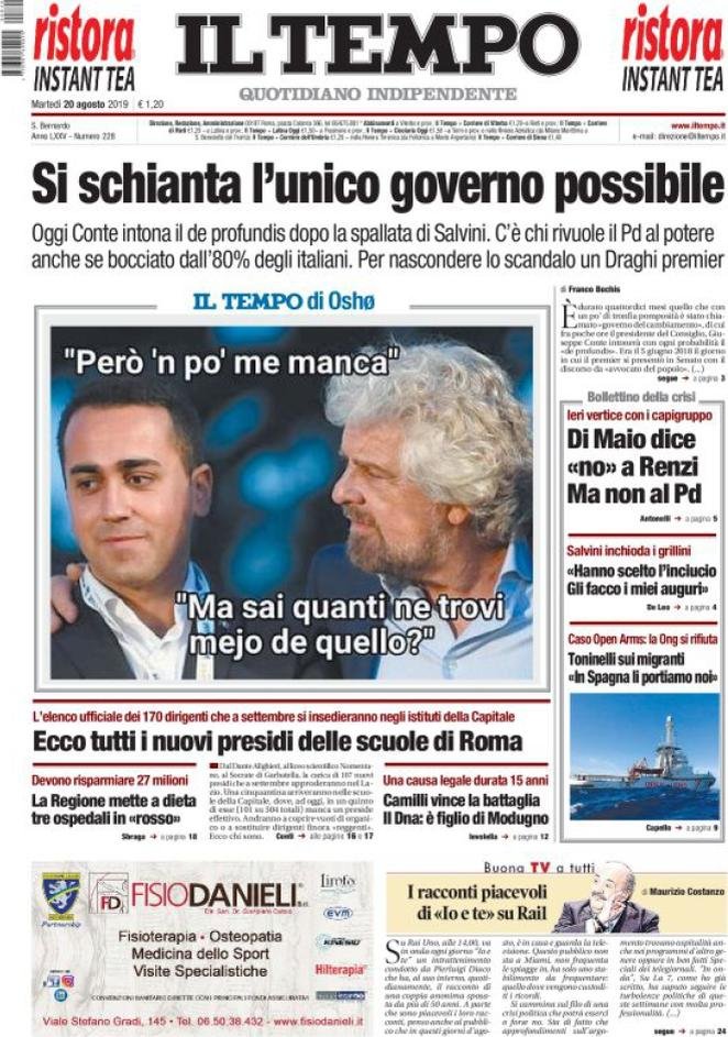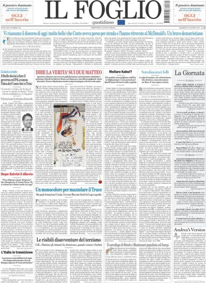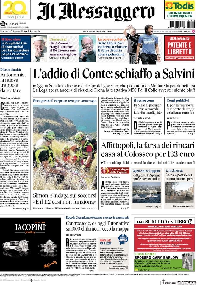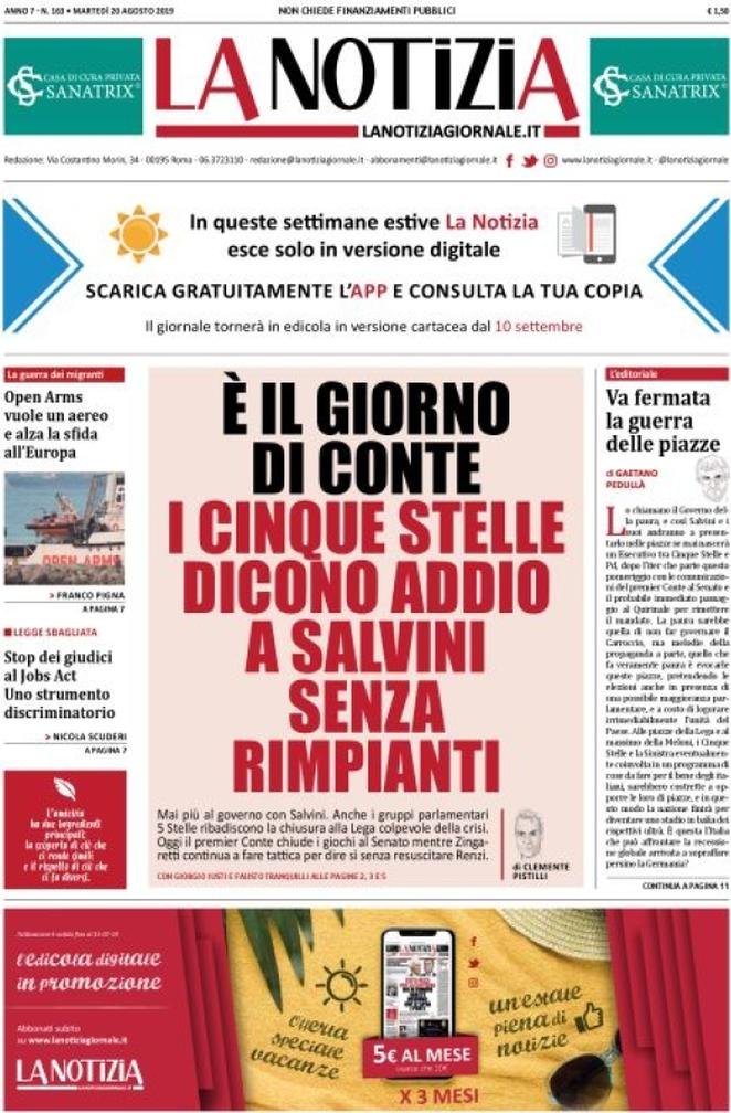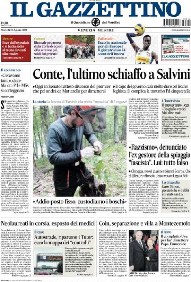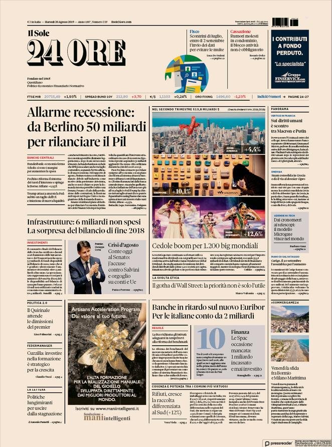 20 agosto: prime pagine Italia