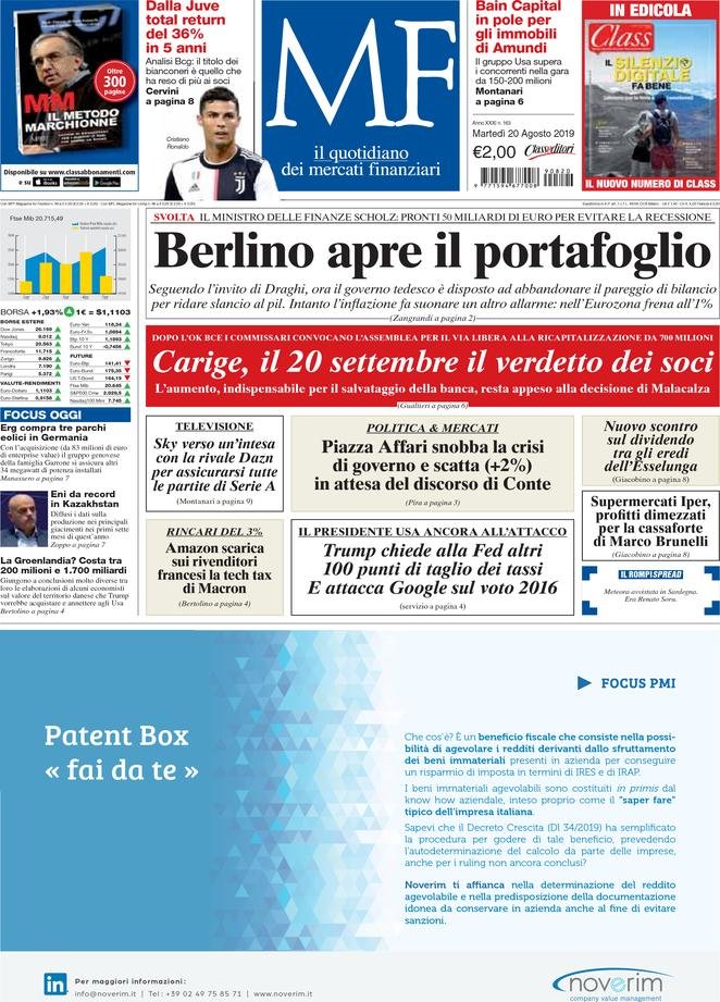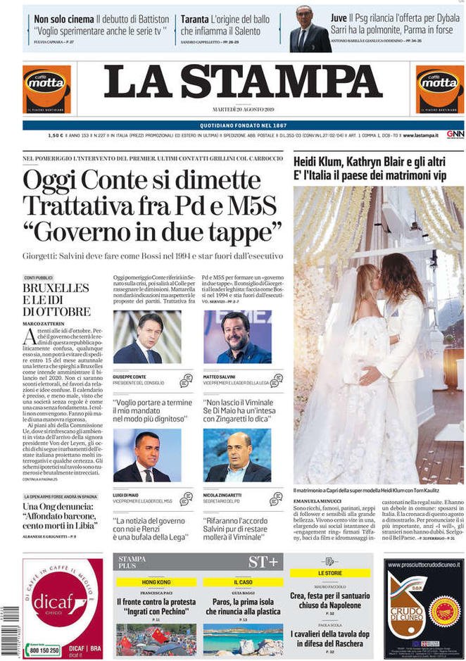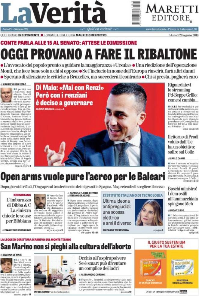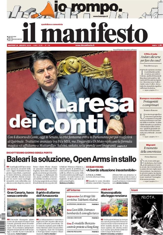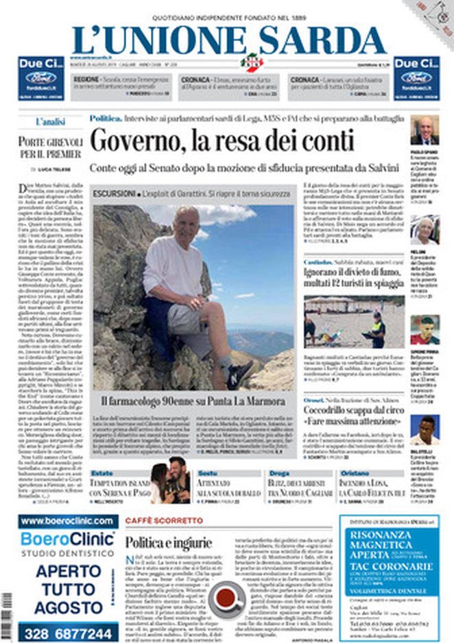 20 agosto: prime pagine Italia