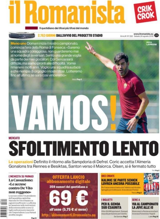 Corriere dello sport, Fabrizio Sbardella, il romanista, ilcontadinodimontagna, La Gazzetta del Mezzogiorno, mundo deportivo, Q S, quotidiano sportivo, Record, Tutto Sport