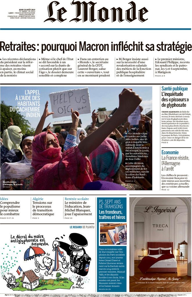 Cronache estere, Europa, Mondo, prime pagine