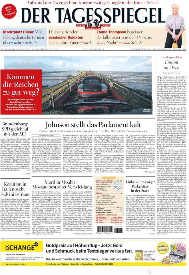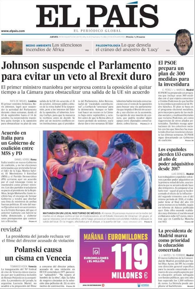 29 agosto: prime pagine estero