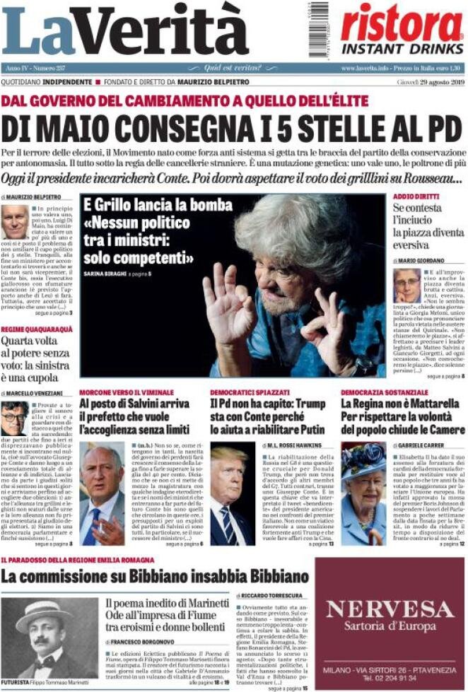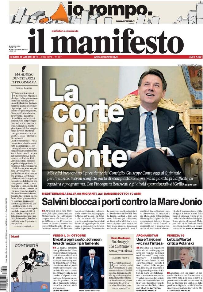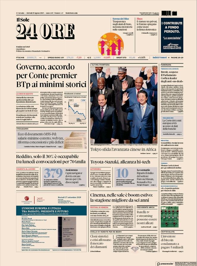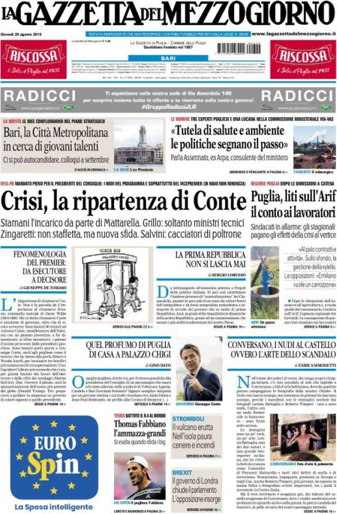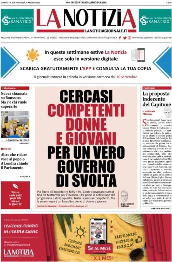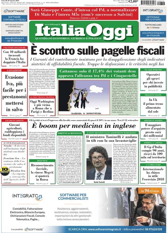29 agosto: prime pagine Italia