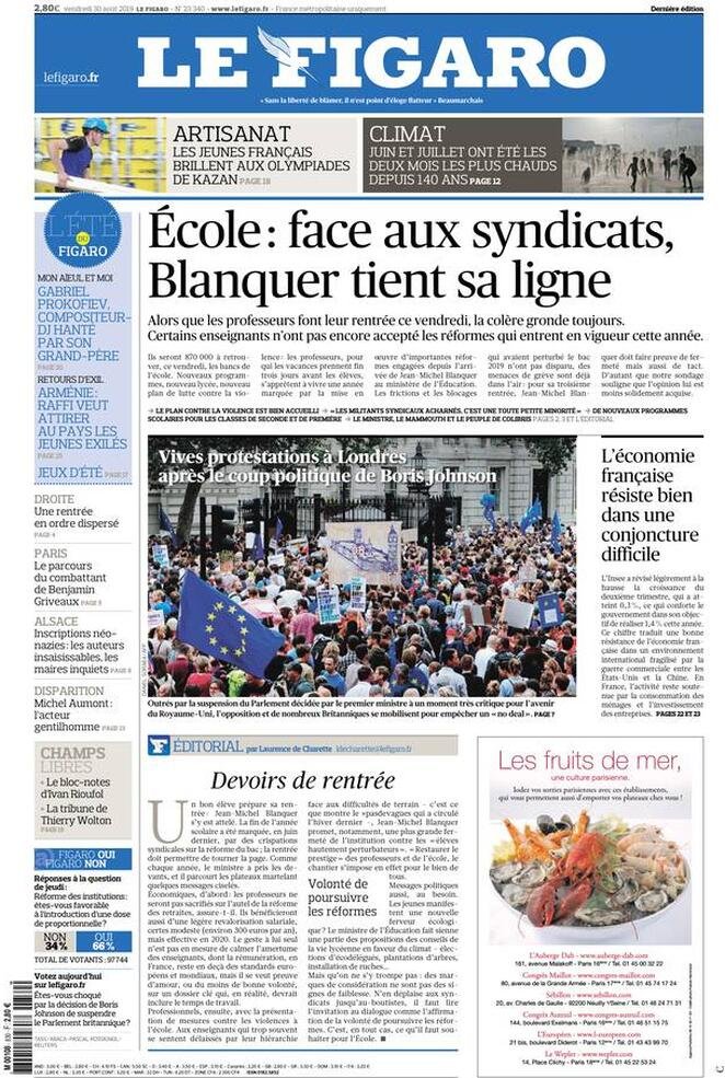 30 agosto: prime pagine estero