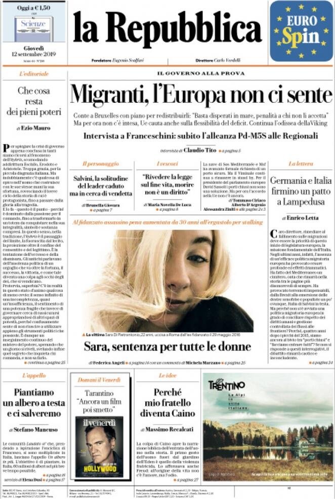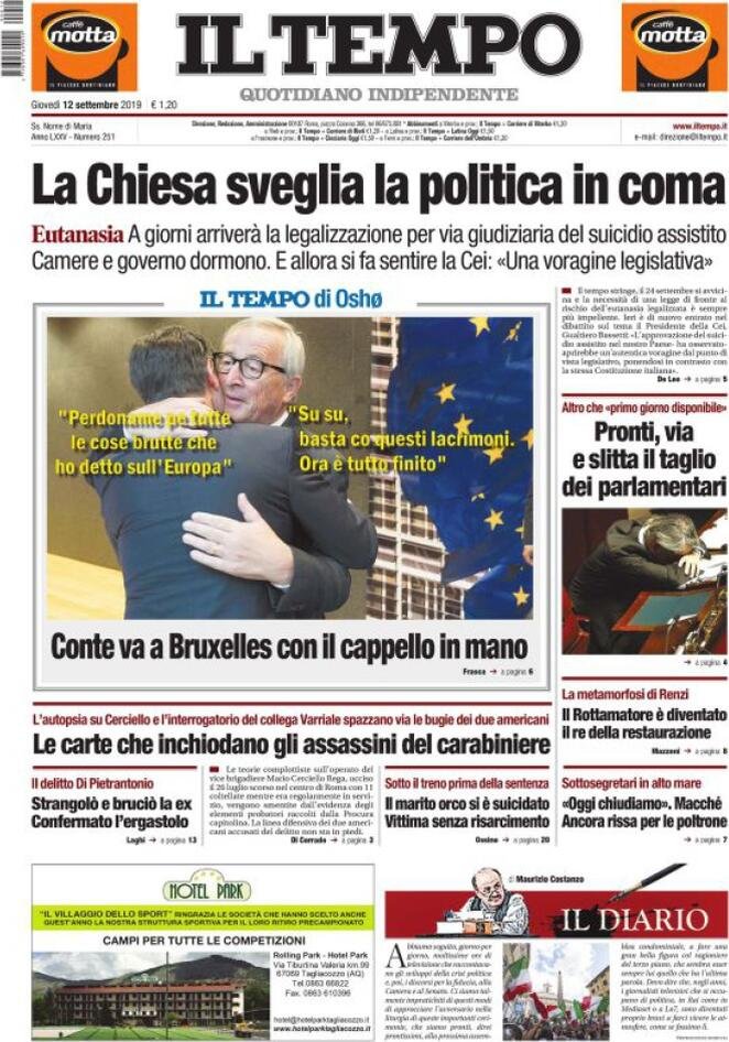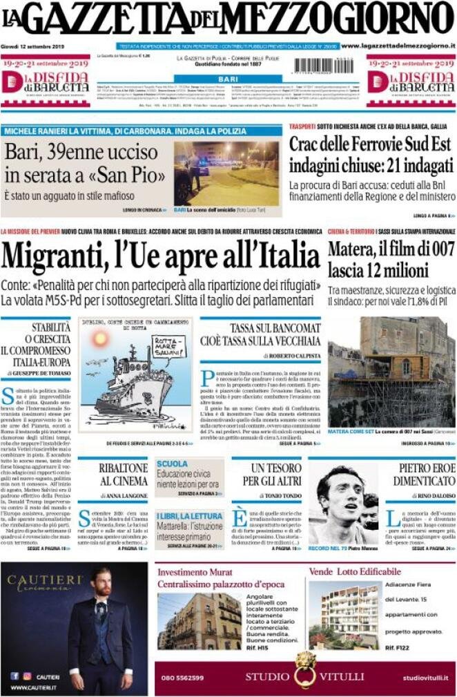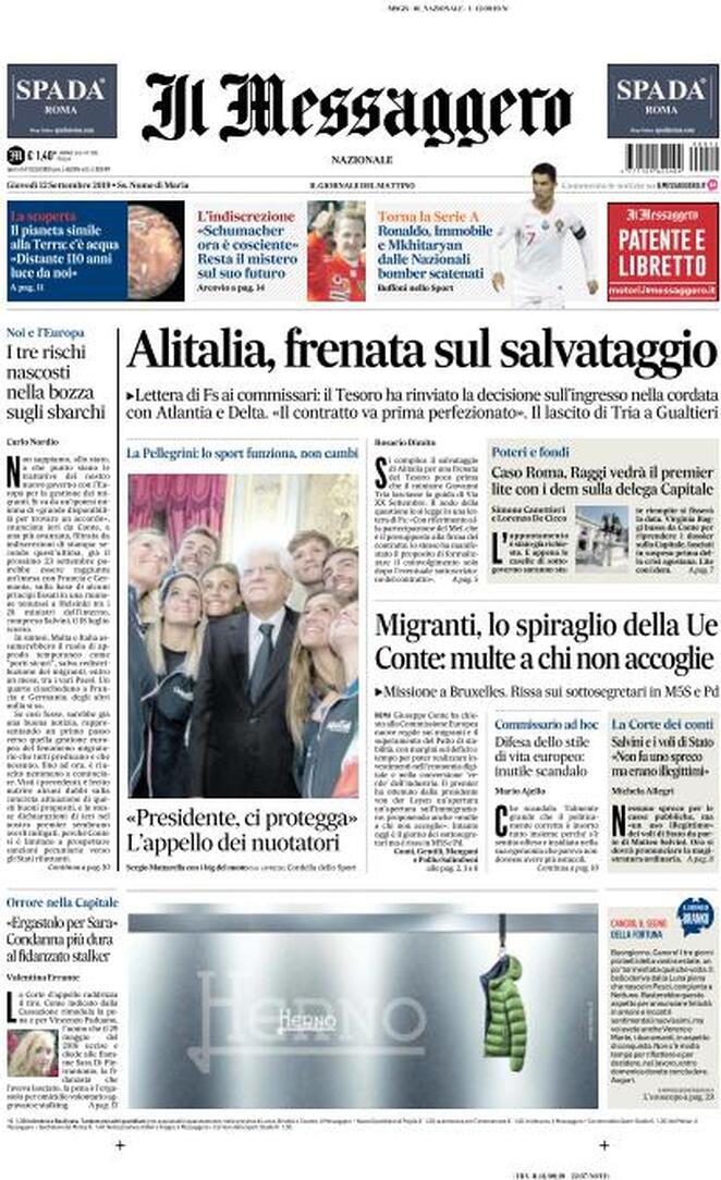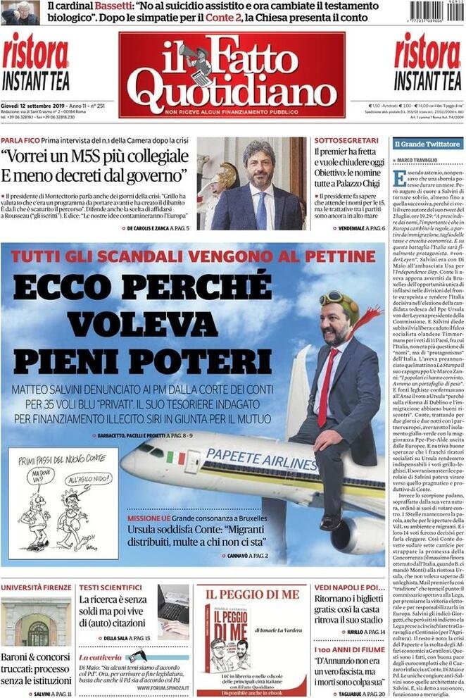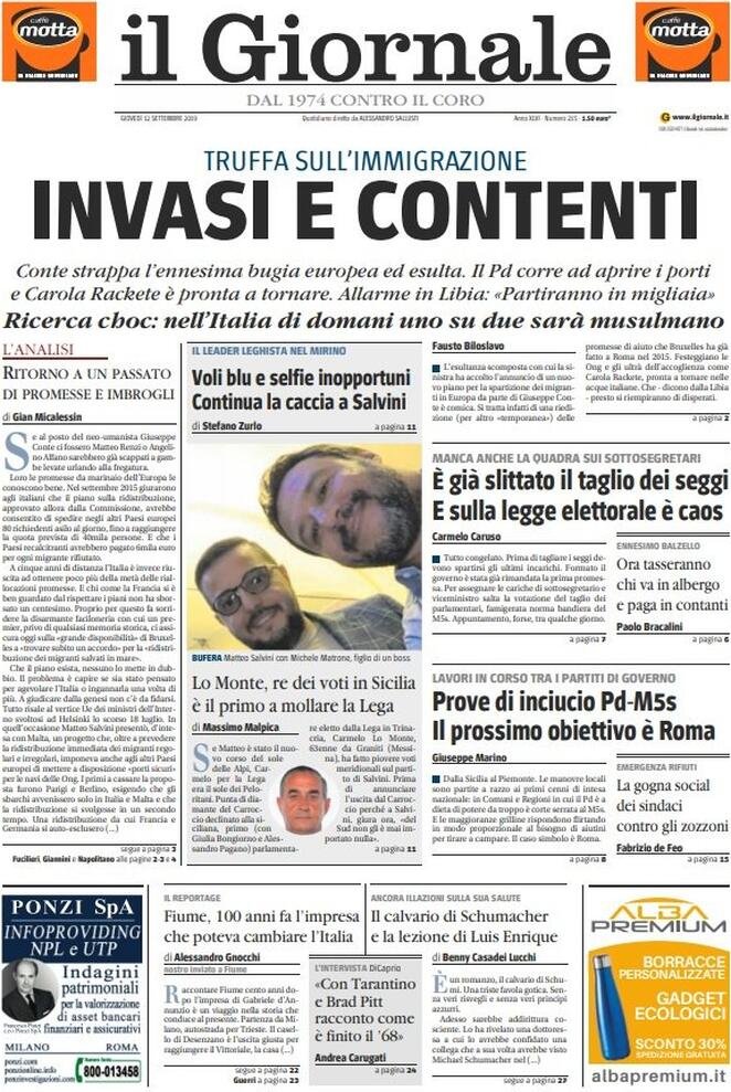 12 settembre: prime pagine Italia