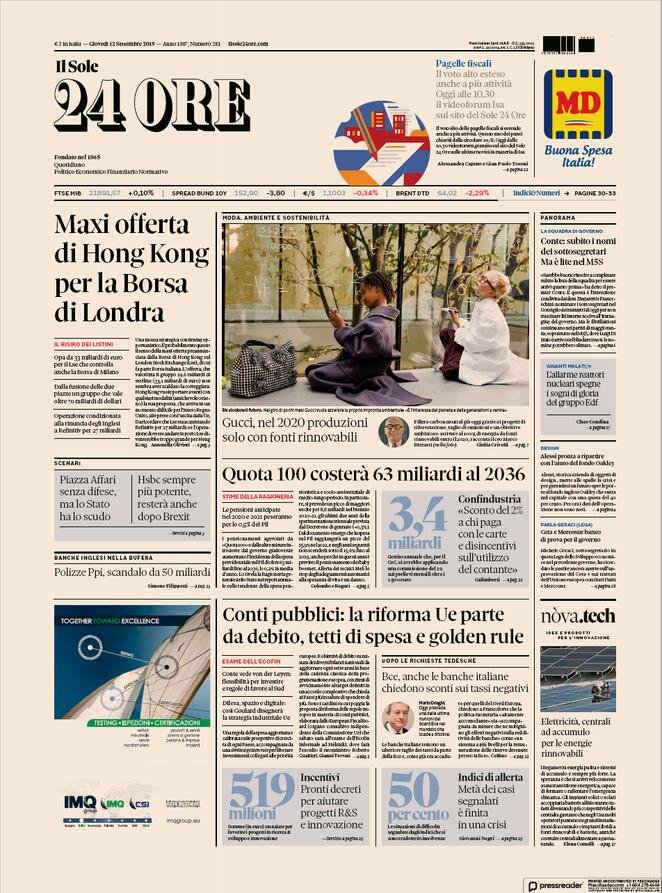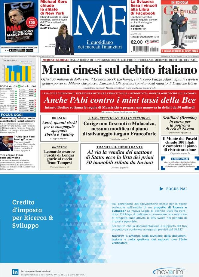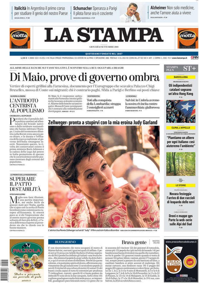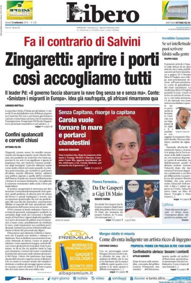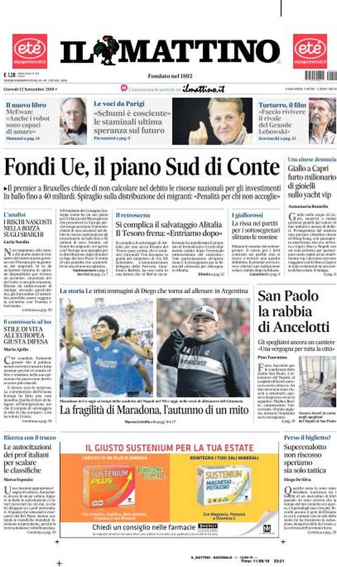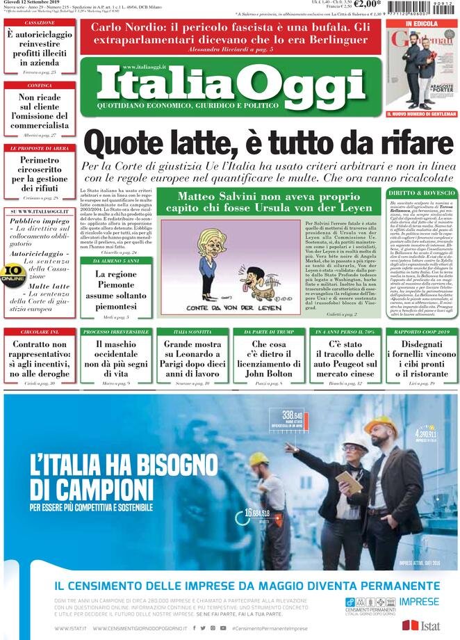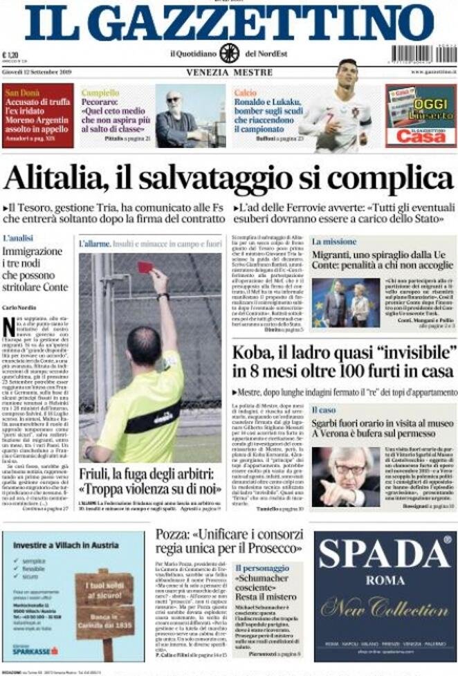 12 settembre: prime pagine Italia