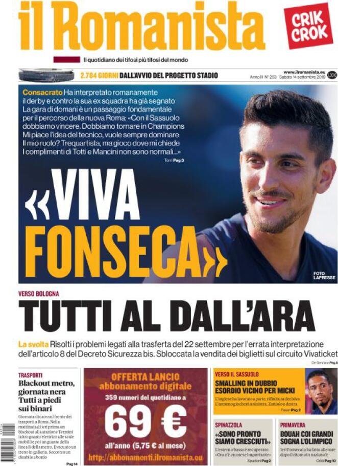 AS, Corriere dello sport, Fabrizio Sbardella, il romanista, ilcontadinodimontagna, l'Equipe, mundo deportivo, Q S, quotidiano sportivo