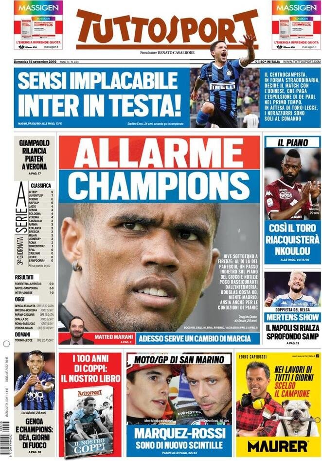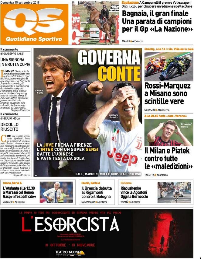 15 settembre: prime pagine Sport