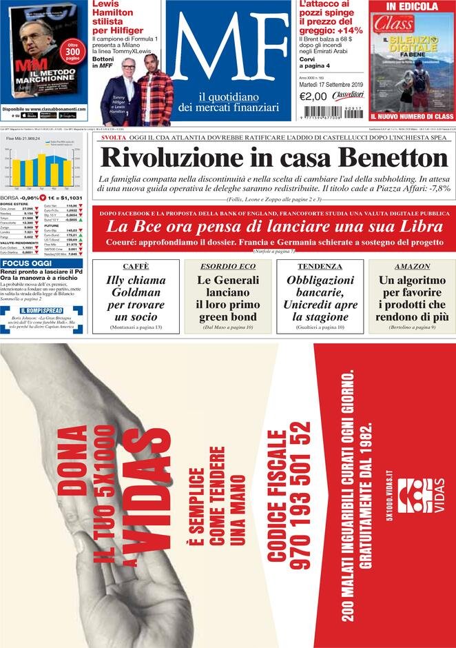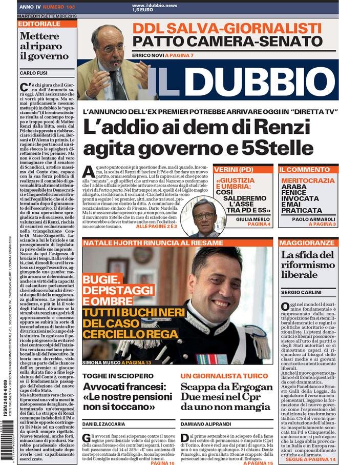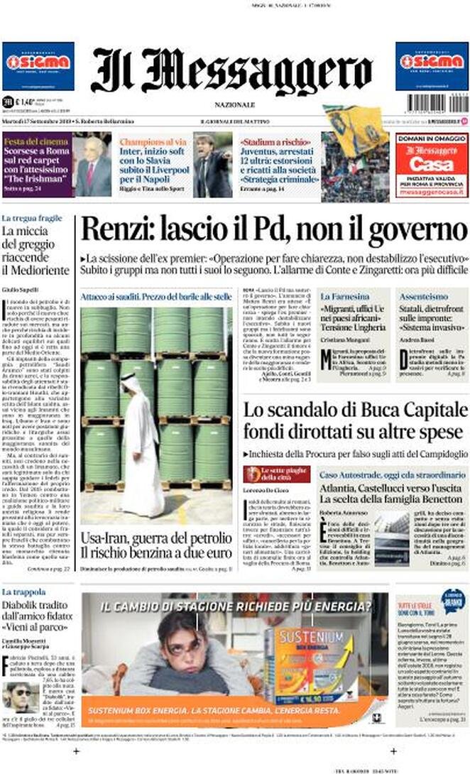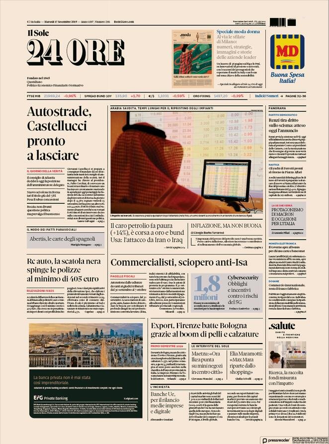 Le prime pagine dei principali quotidiani nazionali in edicola oggi