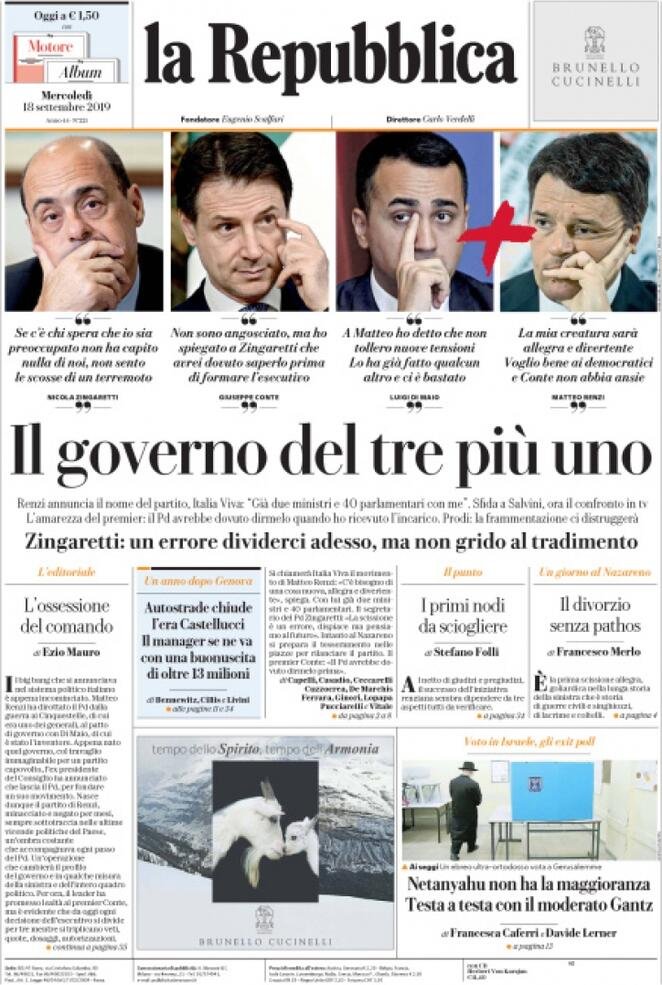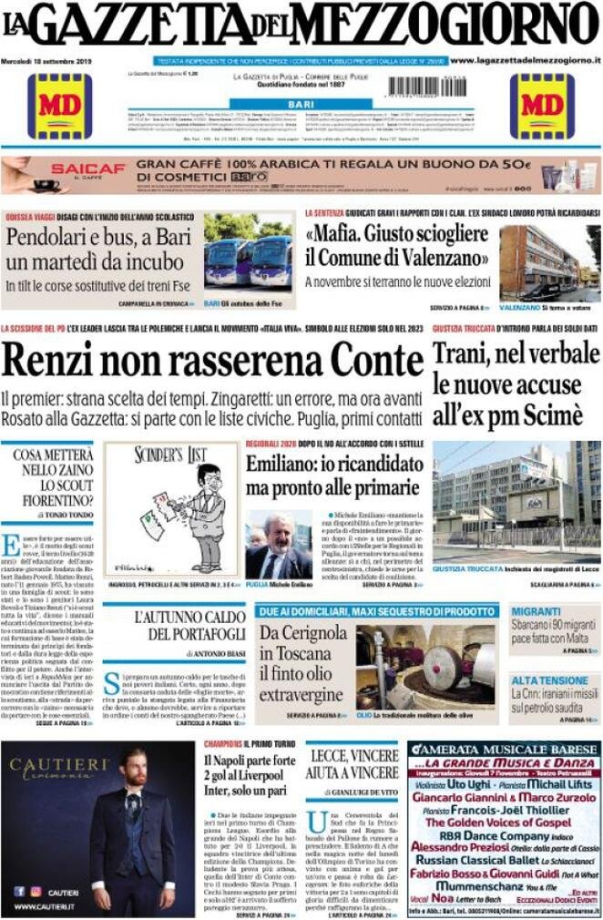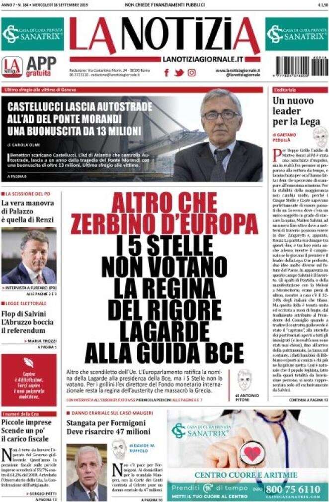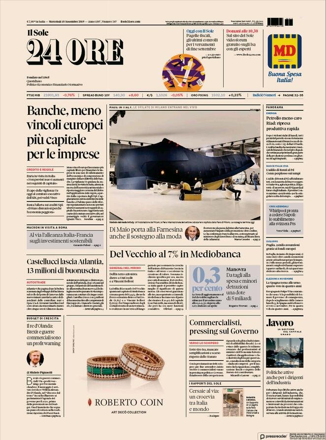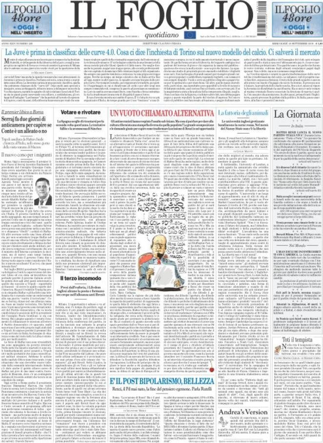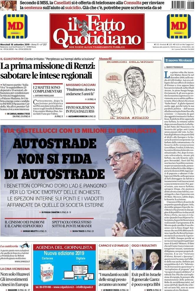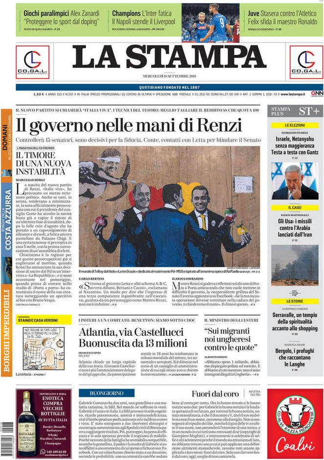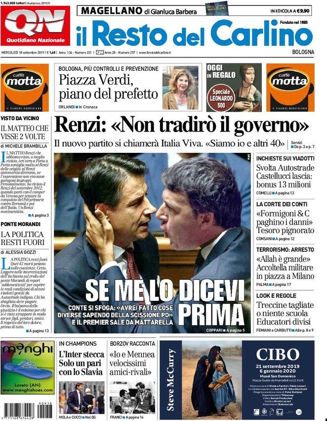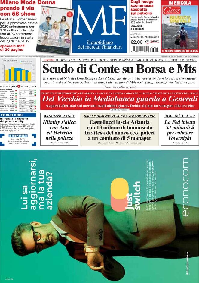 Le prime pagine dei principali quotidiani italiani in edicola oggi