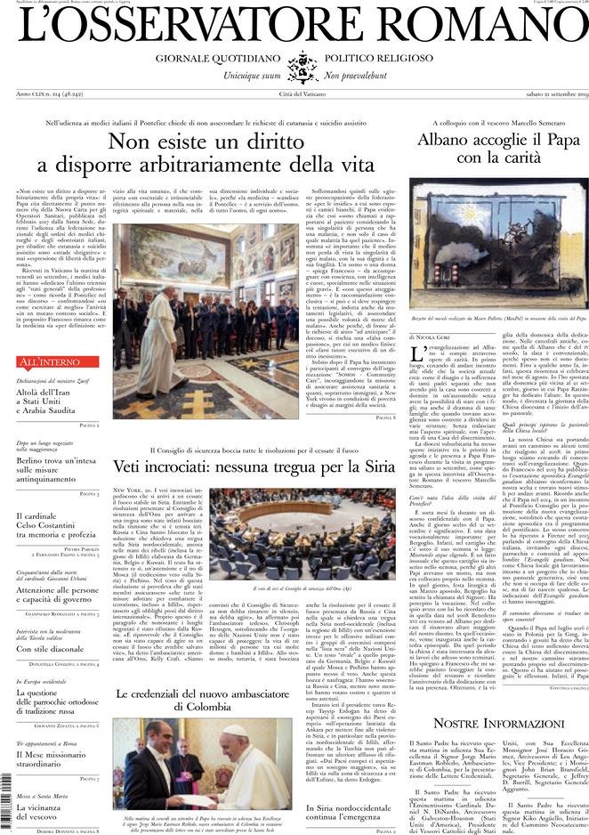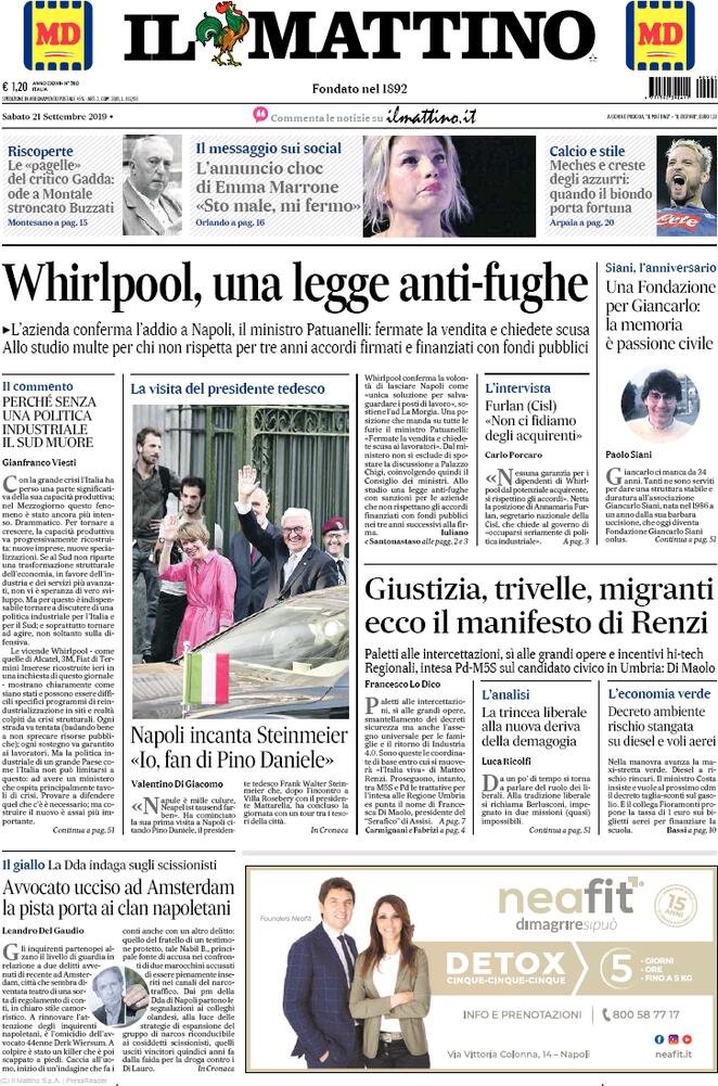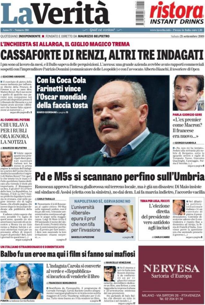 Avvenire, Fabrizio Sbardella, il dubbio, Il fatto quotidiano, Il Foglio, Il Gazzettino, Il Giornale, Il Manifesto, Il Mattino, Il Messaggero, Il Resto del Carlino, Il Secolo XIX, Il sole 24 ore, Il Tempo, ilcontadinodimontagna, Italia Oggi, L'osservatore romano, L'Unione Sarda, La Gazzetta del Mezzogiorno, La Notizia, La Prealpina, La Repubblica, La Stampa, La Verità, Libero, Marketing, Messaggero, Milano Finanza, Osservatore Romano, Unione Sarda