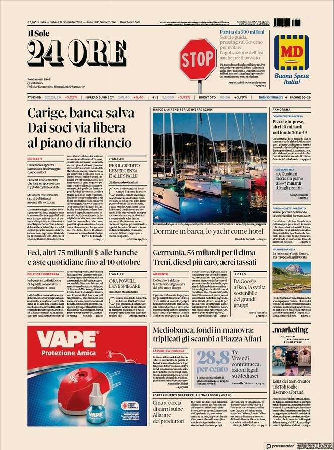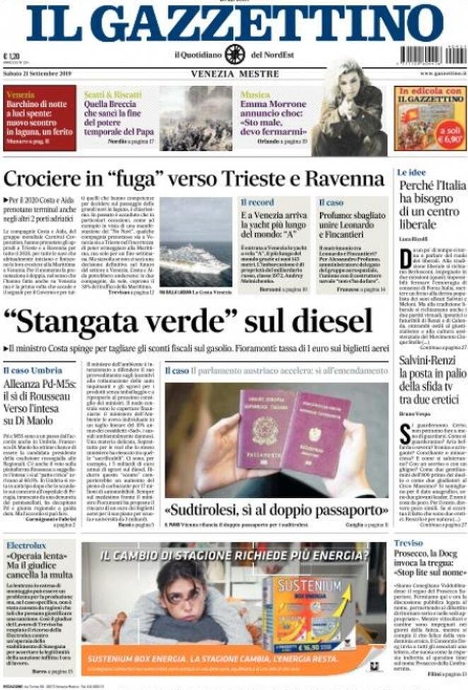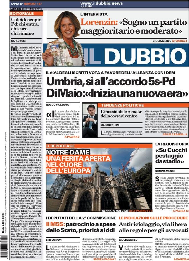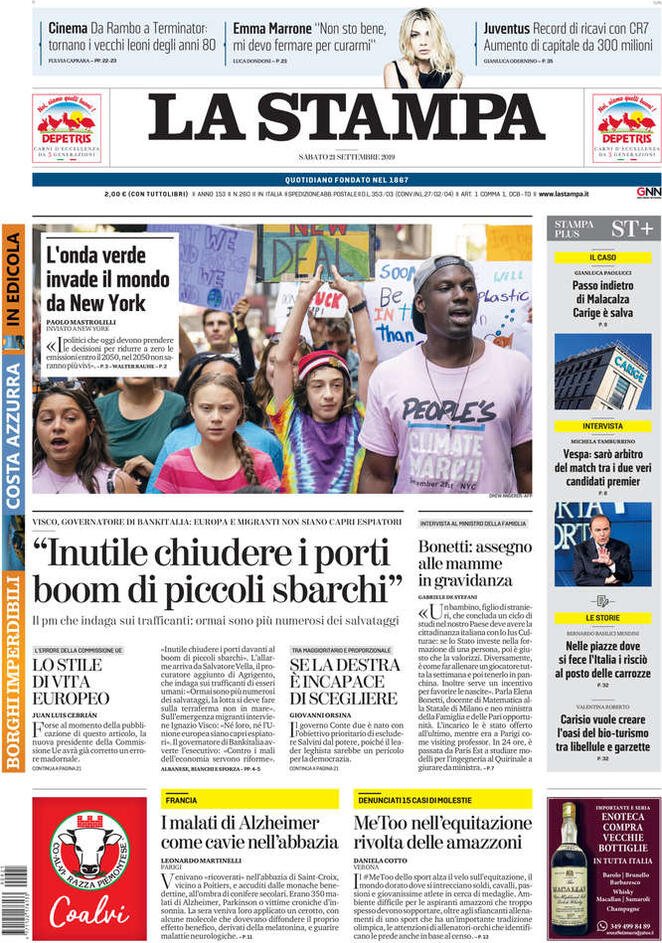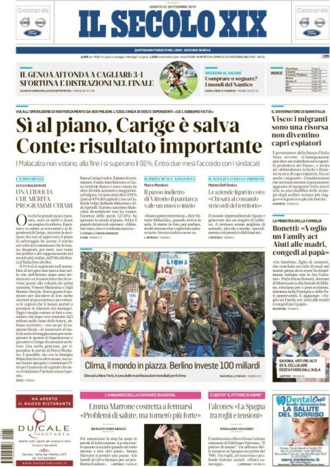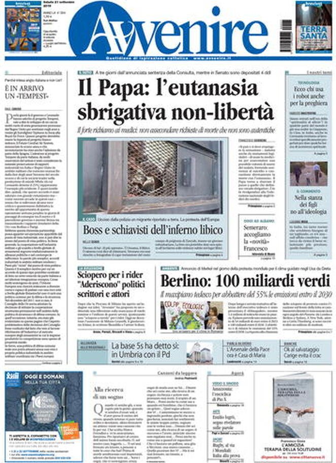21 settembre: prime pagine Italia