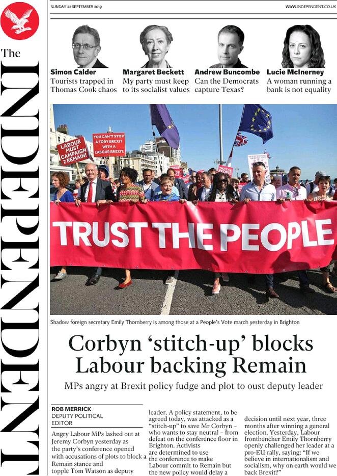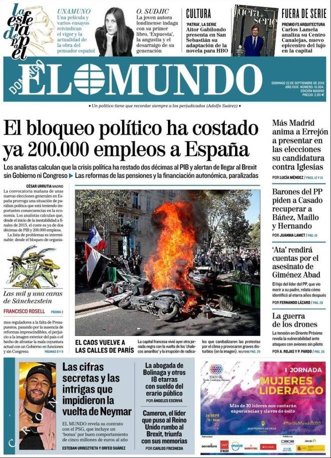 22 settembre: prime pagine estero
