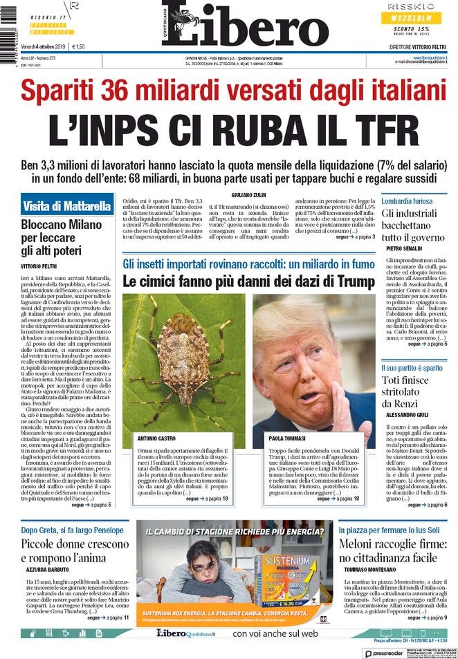 Cronache dal territorio, Cronache italiane, italia, prime pagine