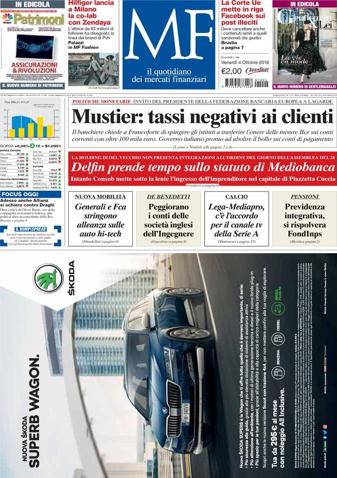 Le prime pagine dei principali quotidiani nazionali in edicola oggi