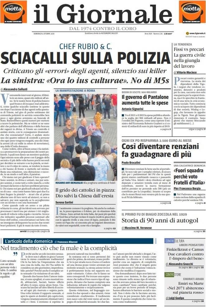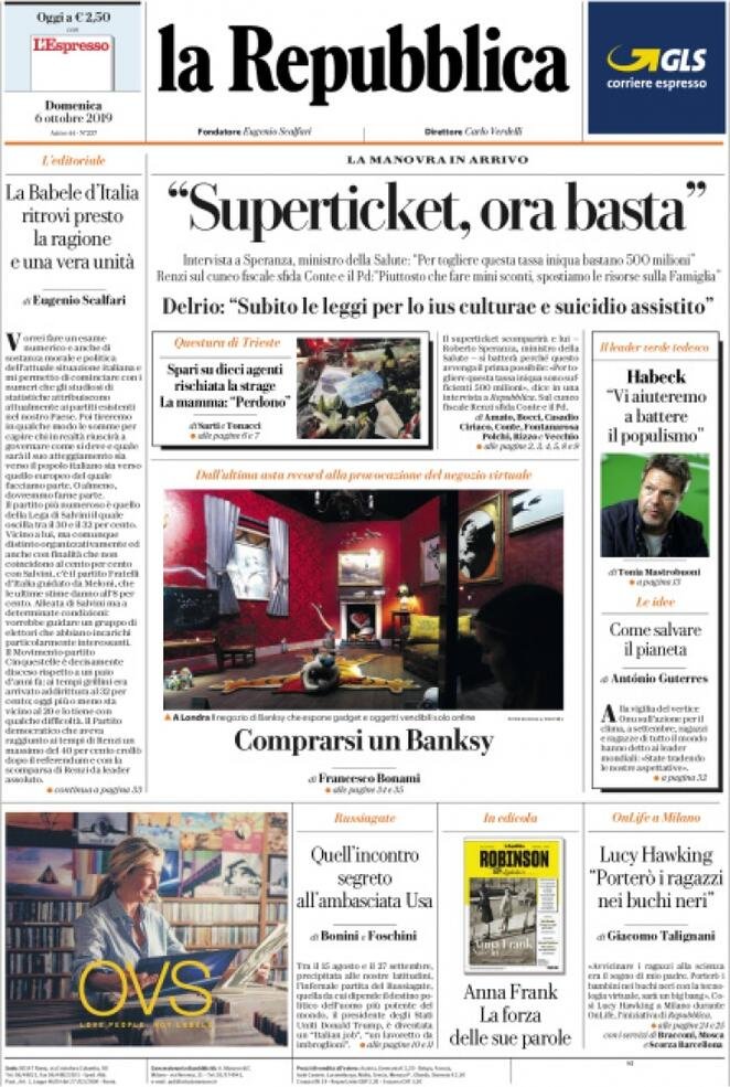 6 ottobre: prime pagine Italia
