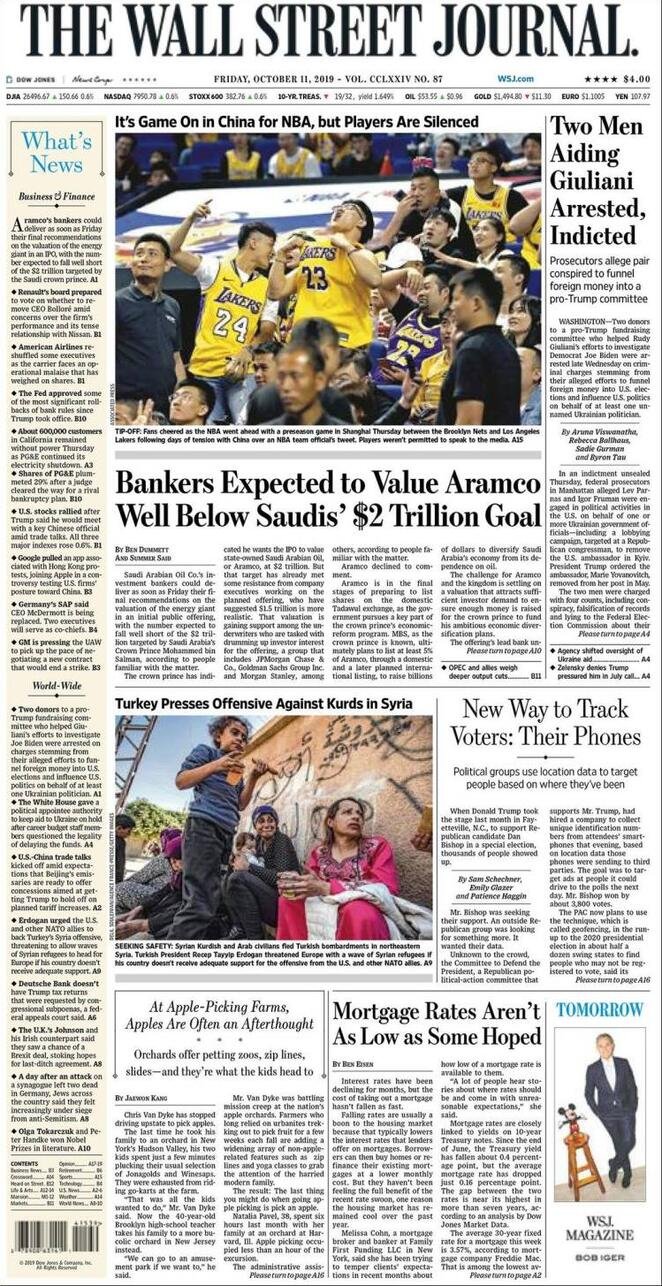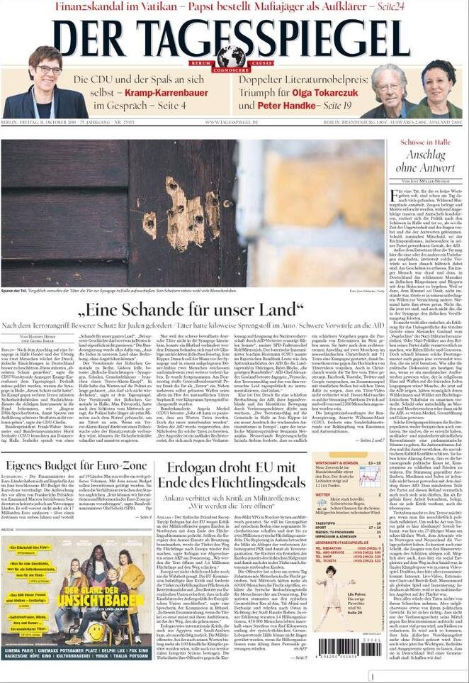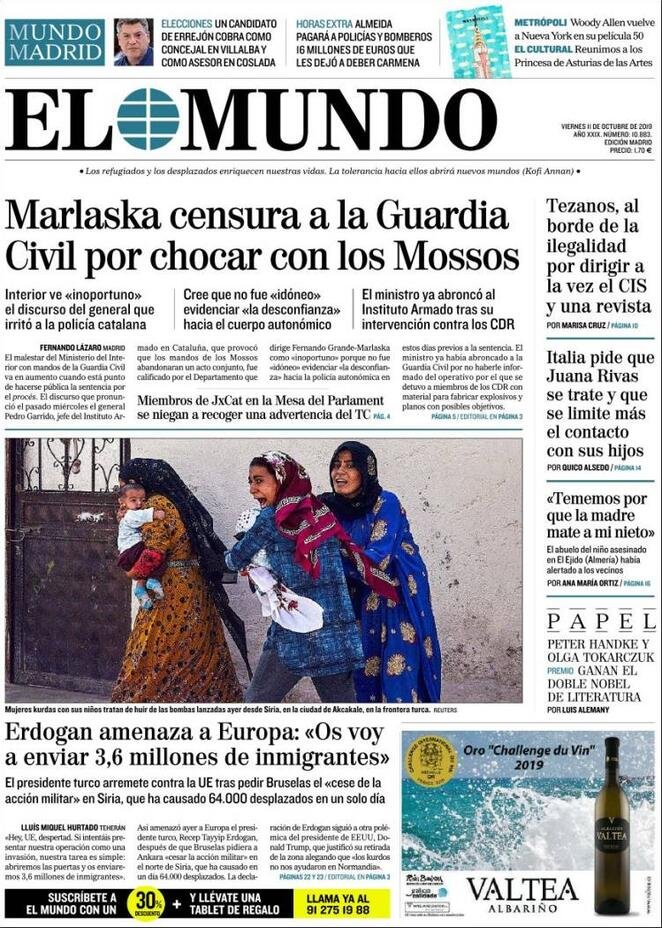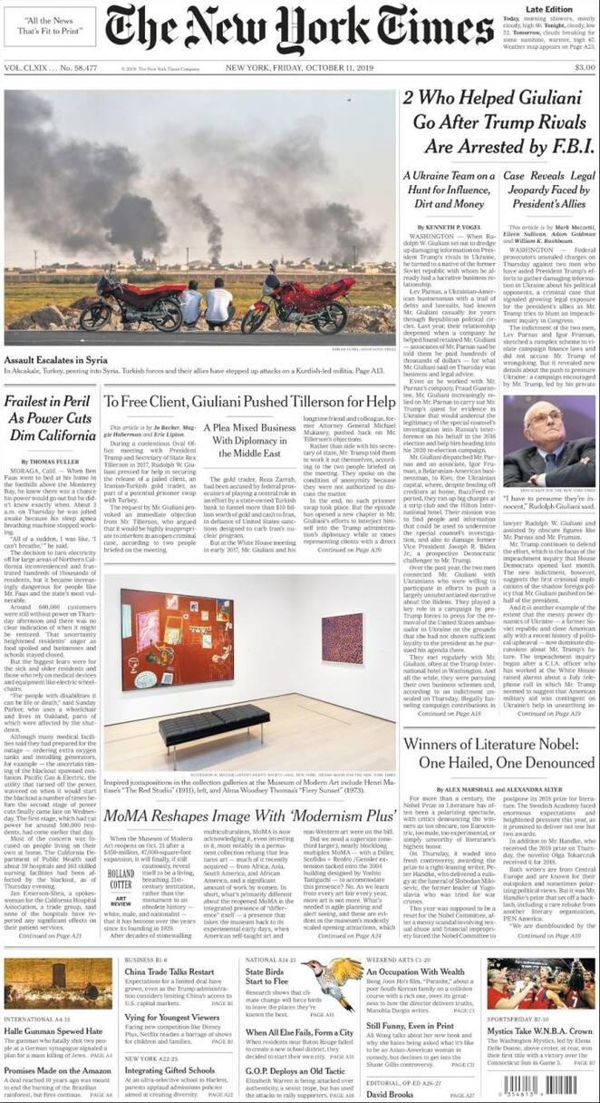 11 ottobre prime pagine estero