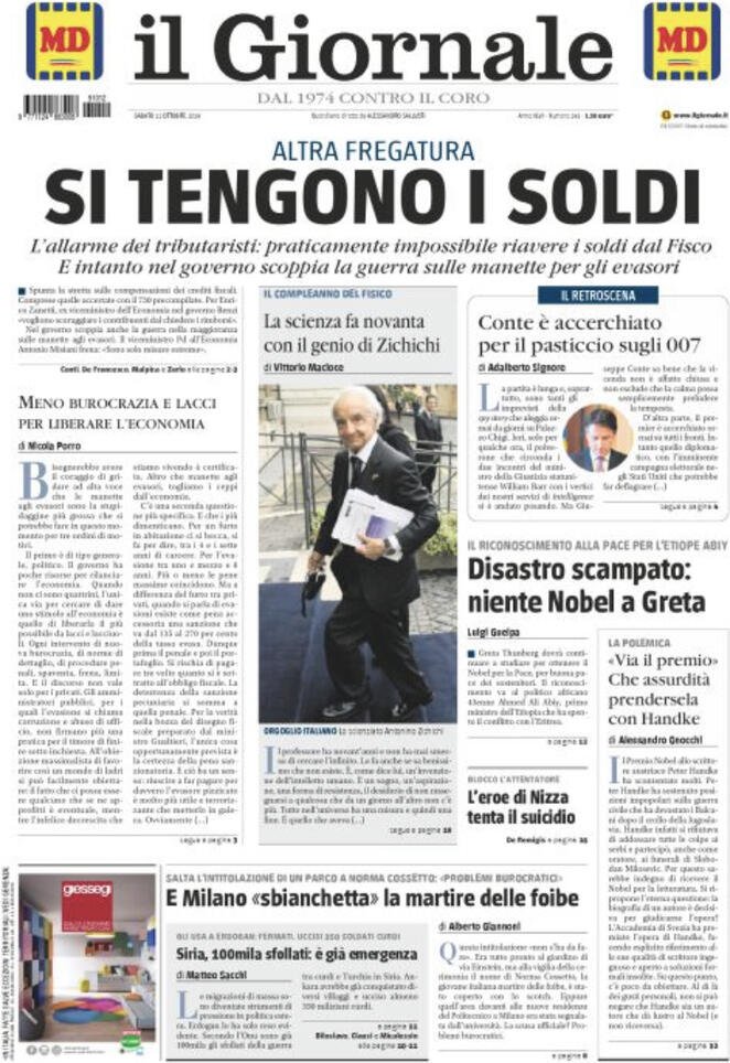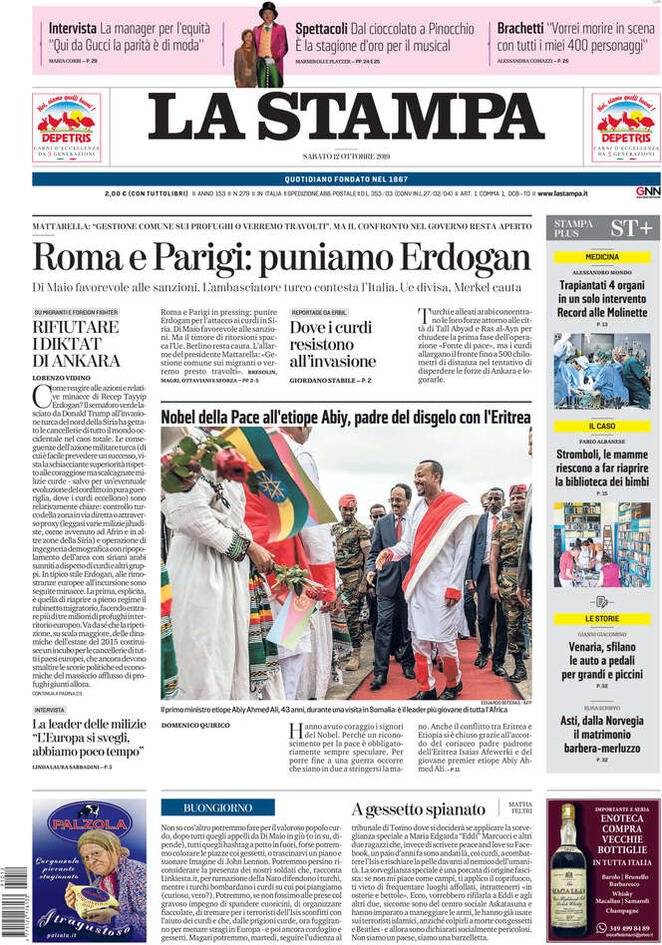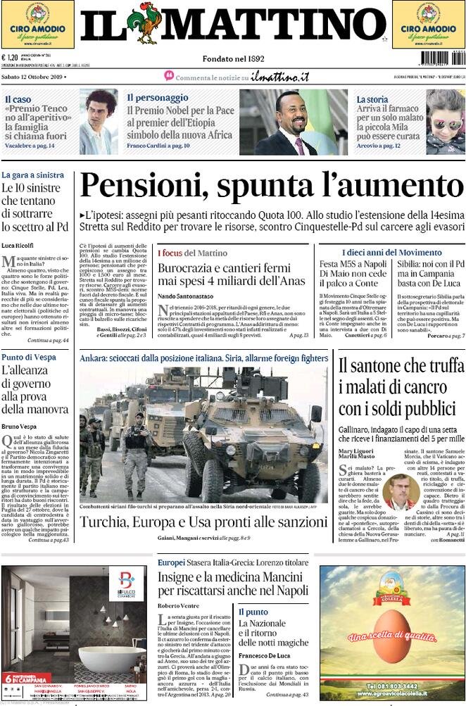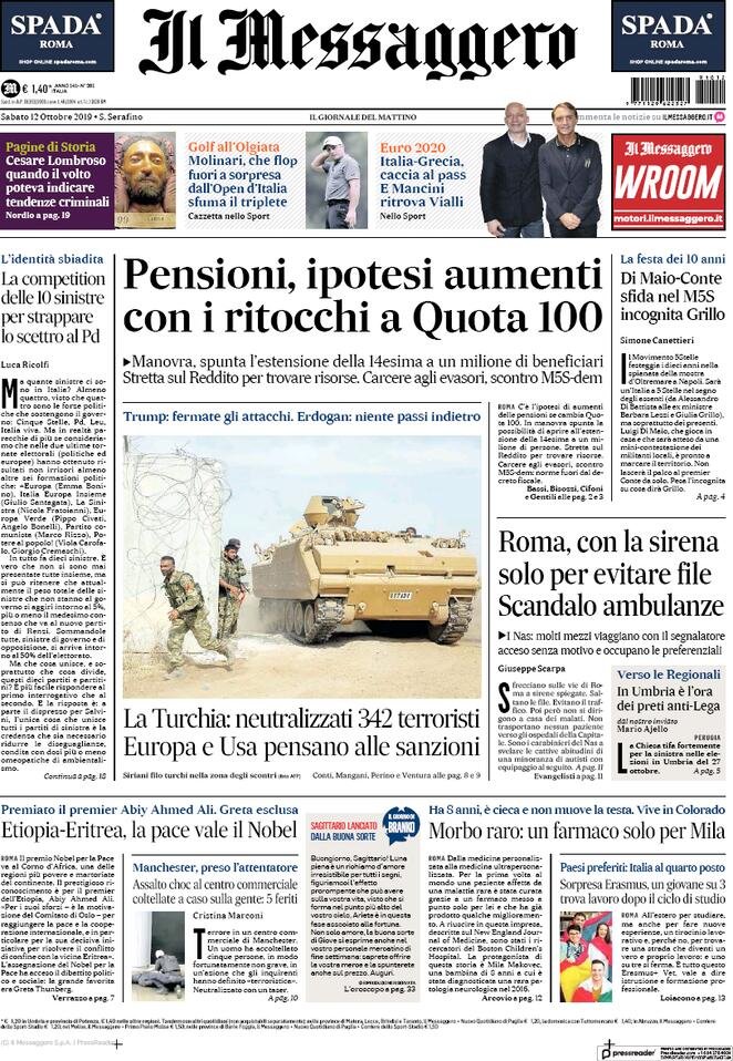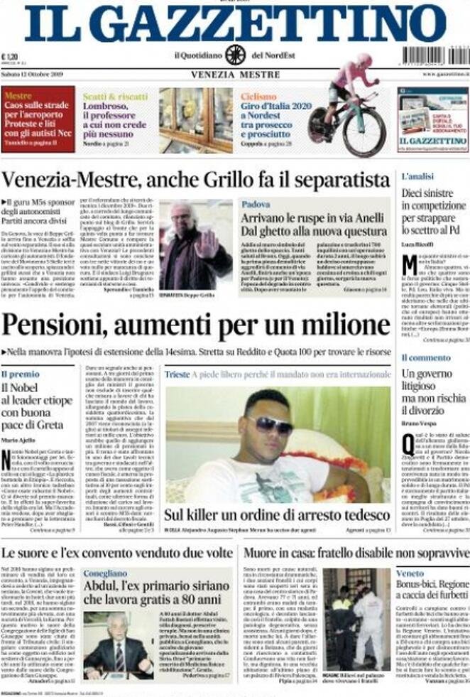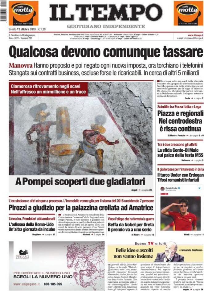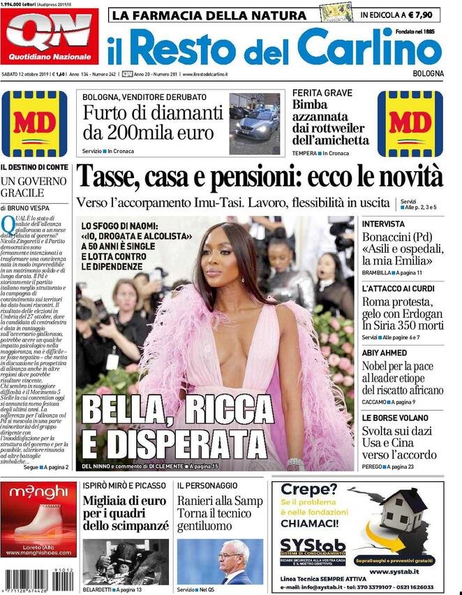 12 ottobre prime pagine Italia